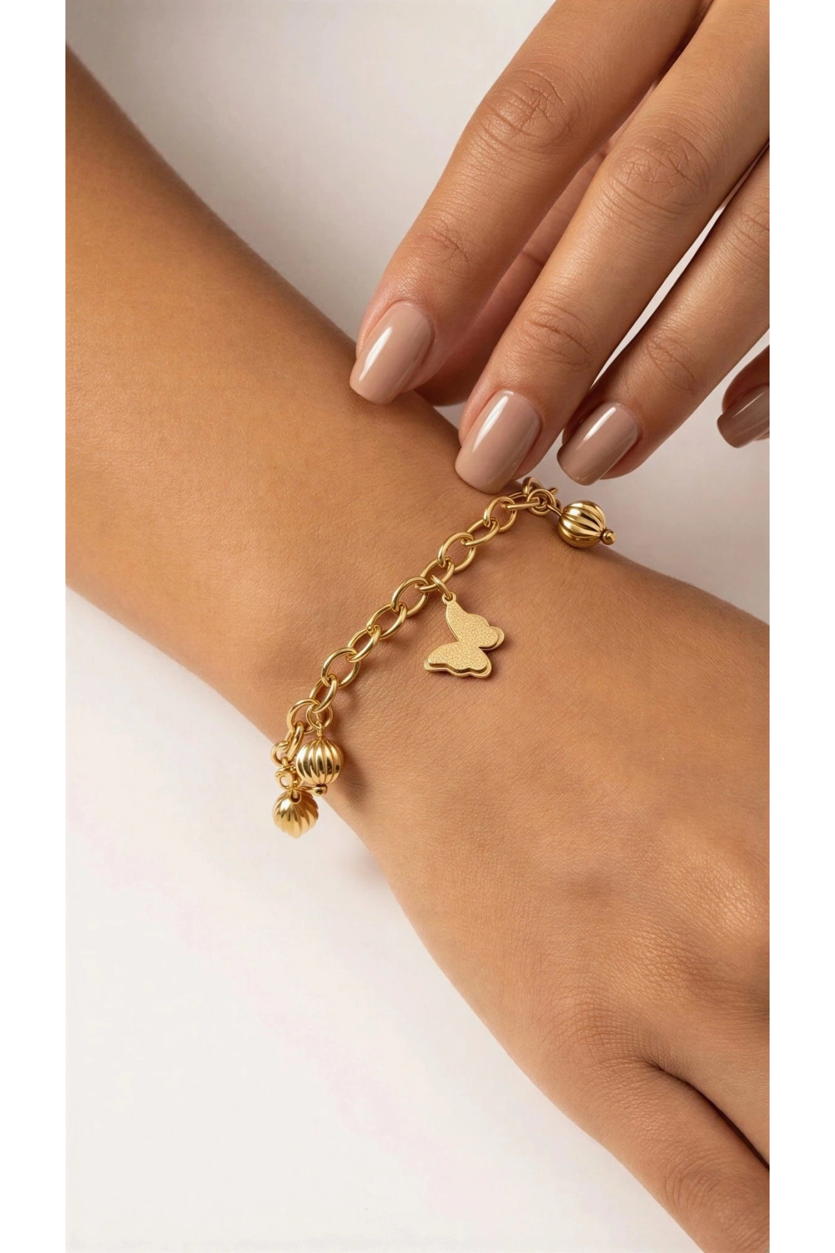 İnce Zincir Sarkıt Kelebek Model Gold Altın Kaplama Çelik Bileklik