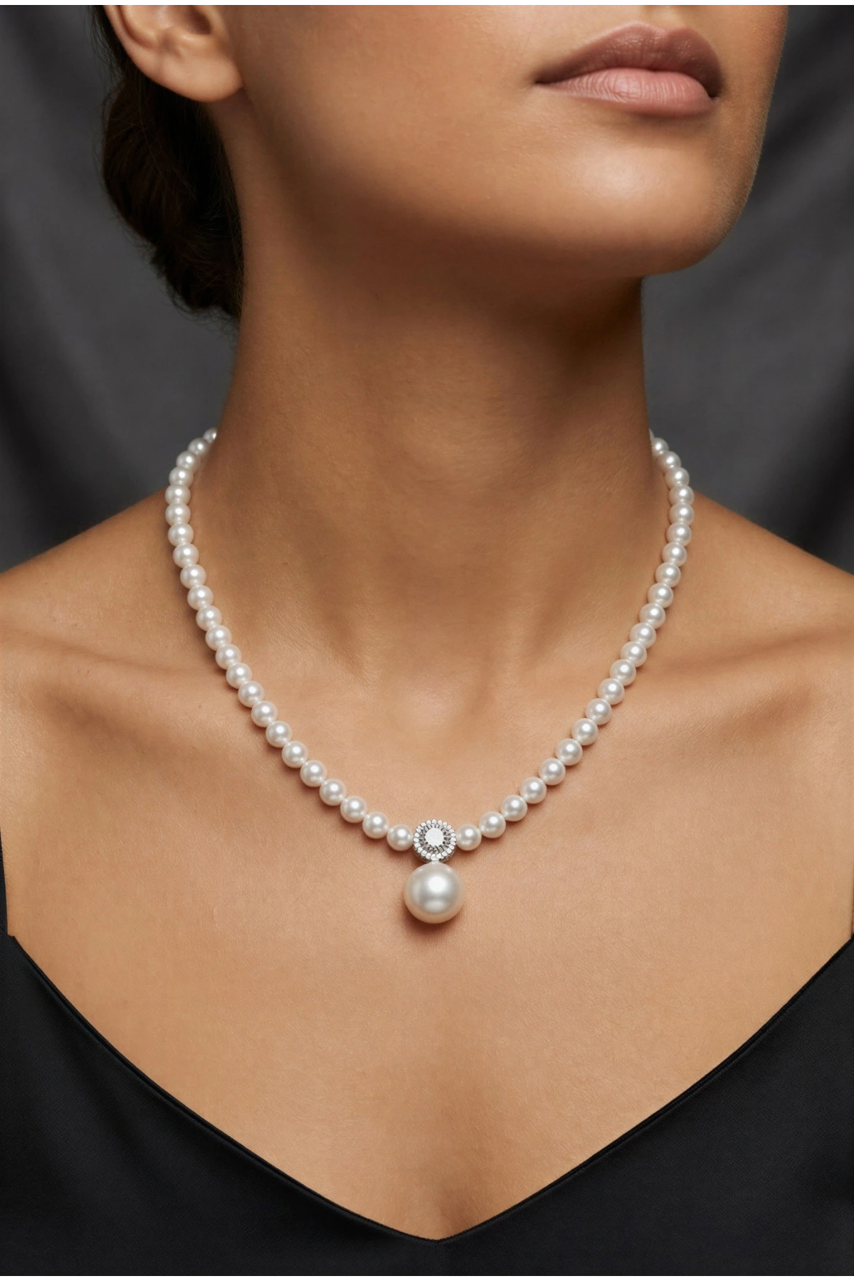 İnci Model Halka Detay Gold Altın Kaplama Kolye