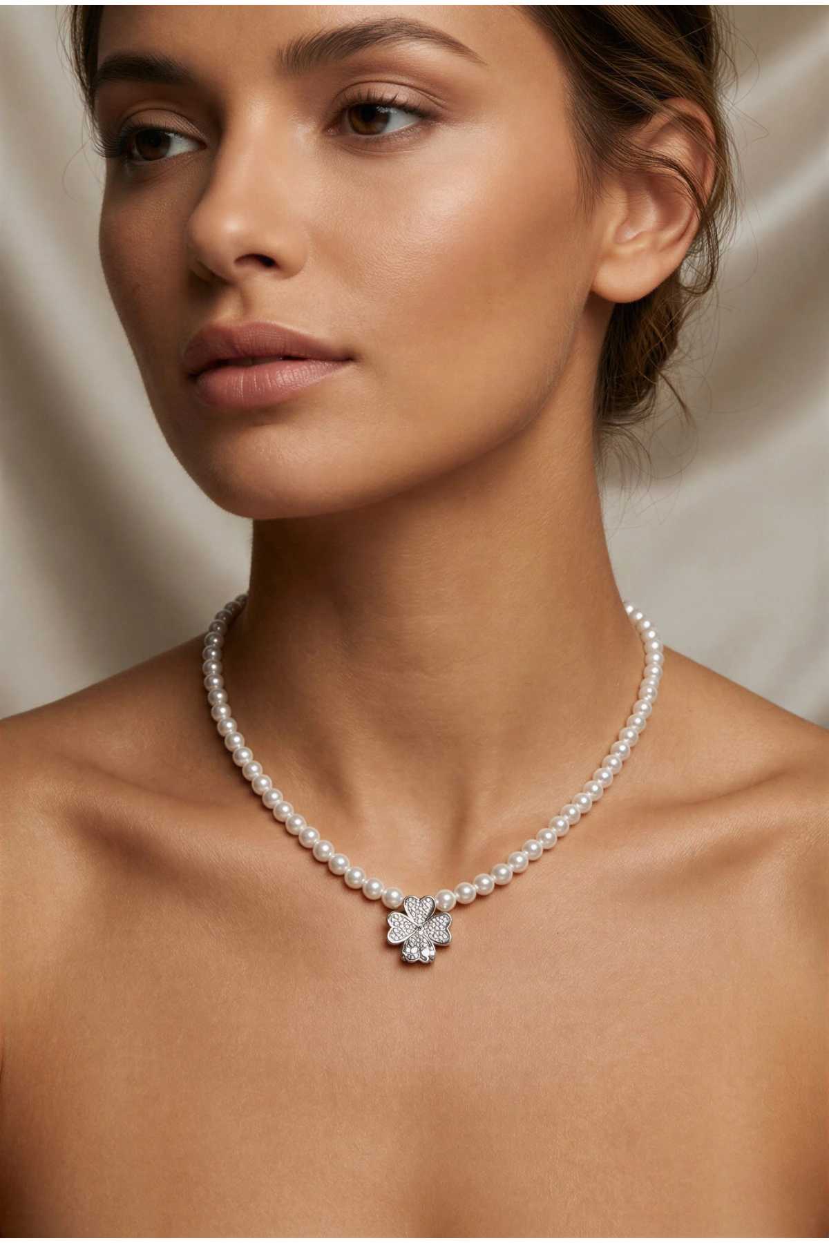 İnci Model Taşlı Dört Yonca Detay Gold Altın Kaplama Kolye