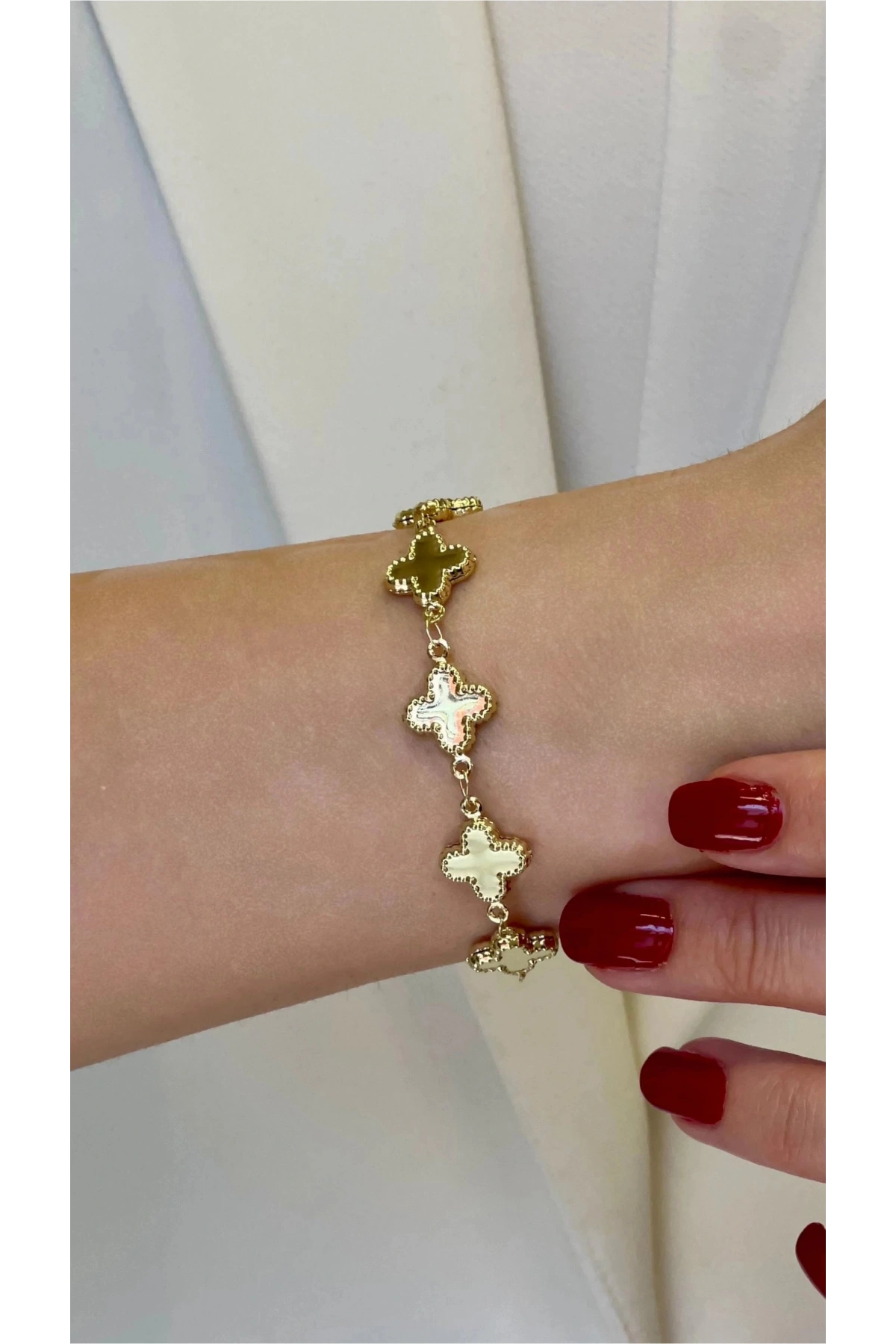Işıl Baskısız Yonca Gold Altın Kaplama Bileklik