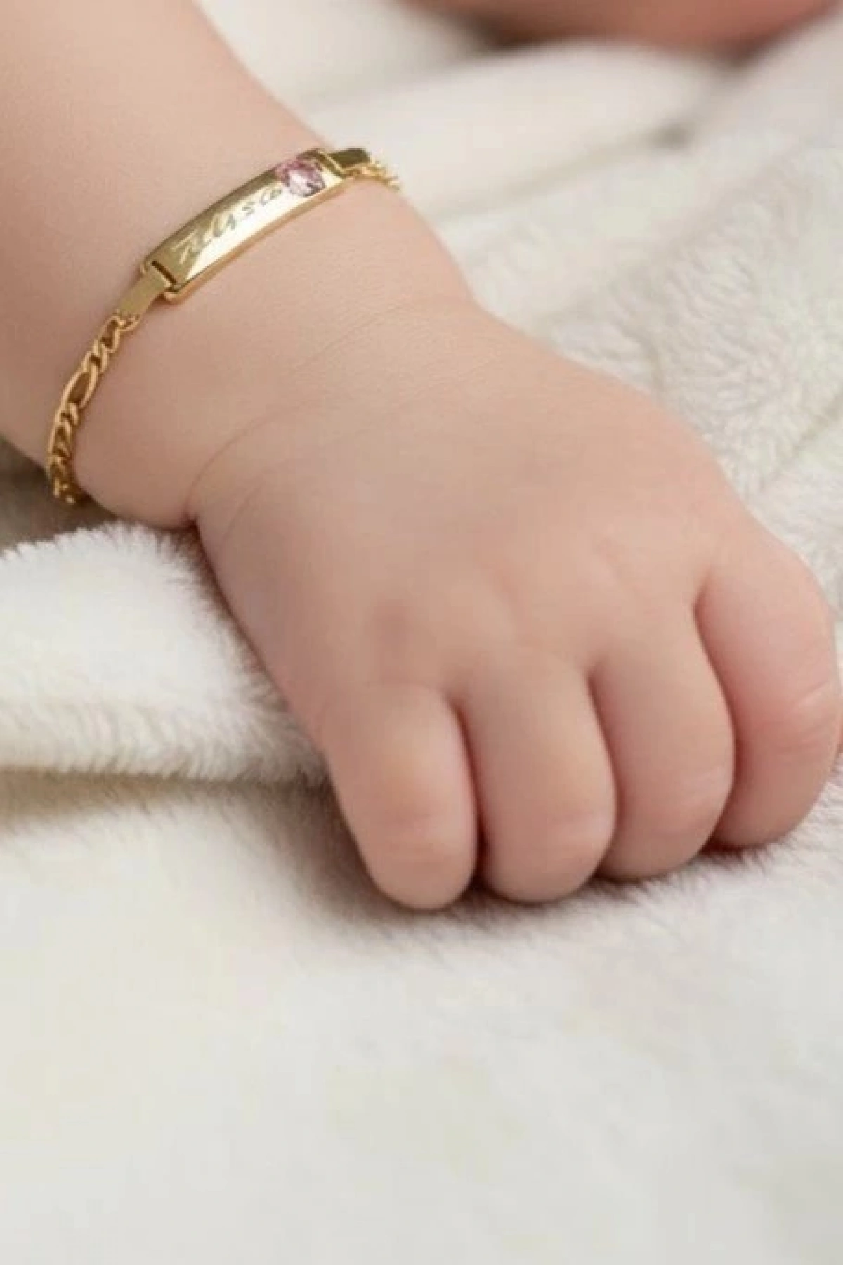 -İSİMLİ- İnce Ezik Bağlı Model Gold Altın Kaplama Kız Bebek Künyesi