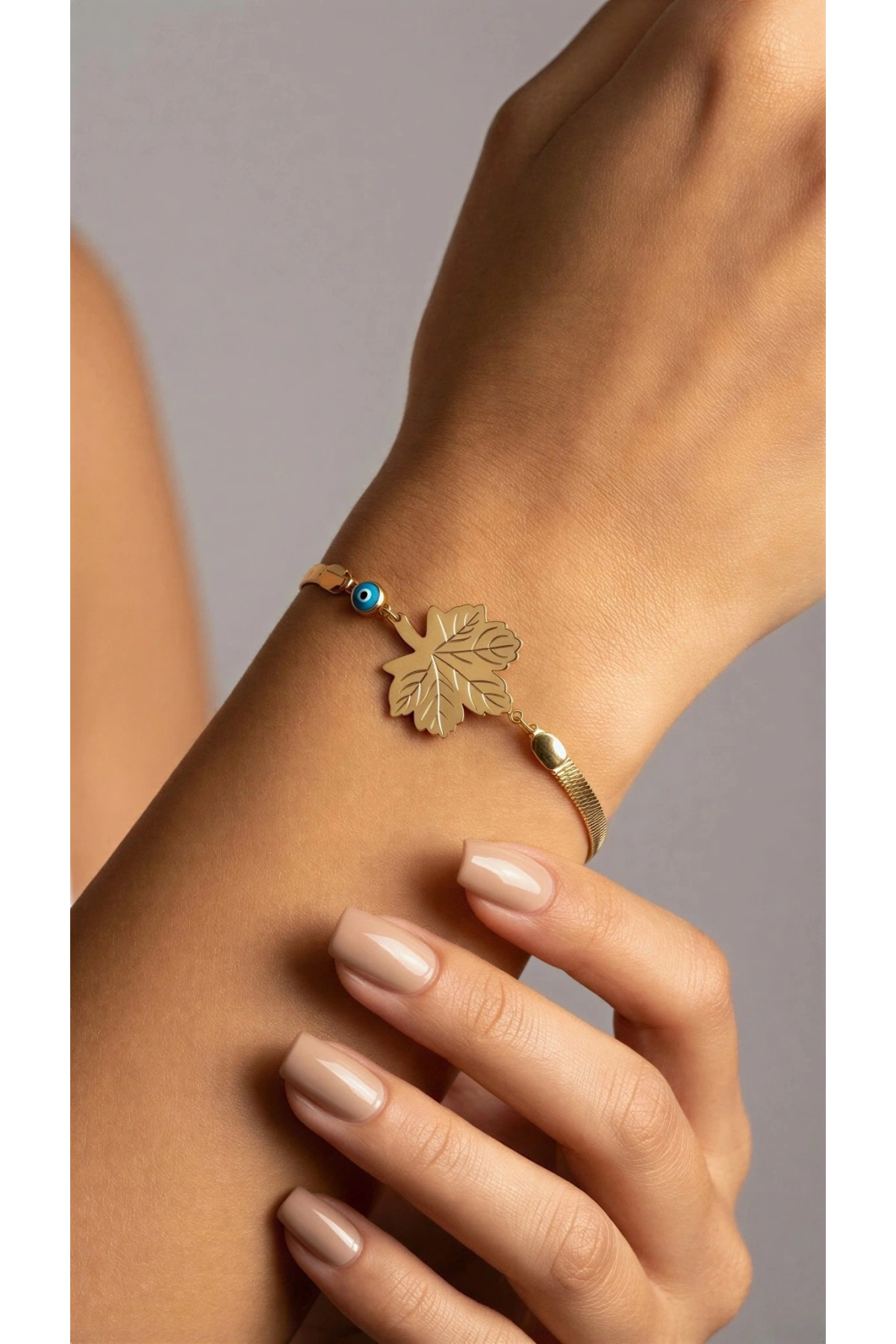 İtalyan Model Yaprak Detay Gold Altın Kaplama Çelik Bileklik