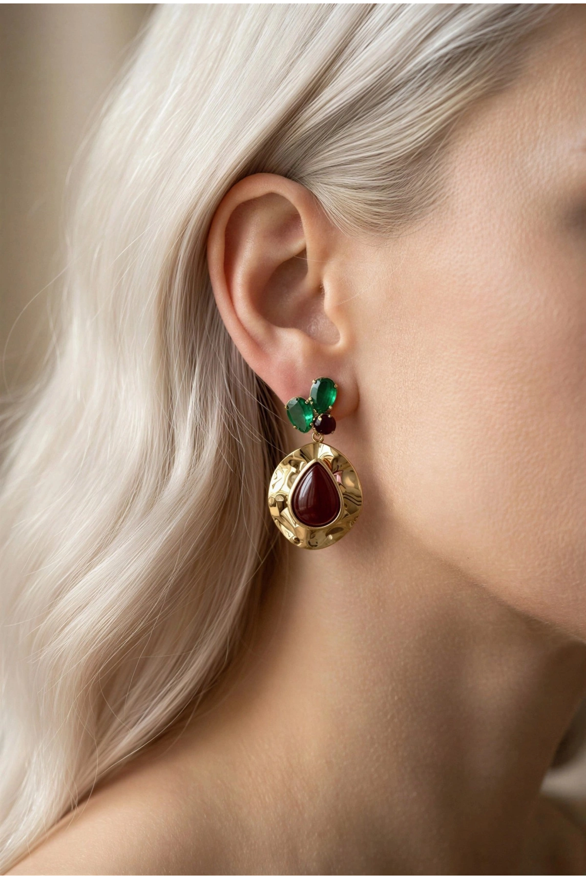 Kahverengi Damla Model Gold Altın Kaplama Küpe