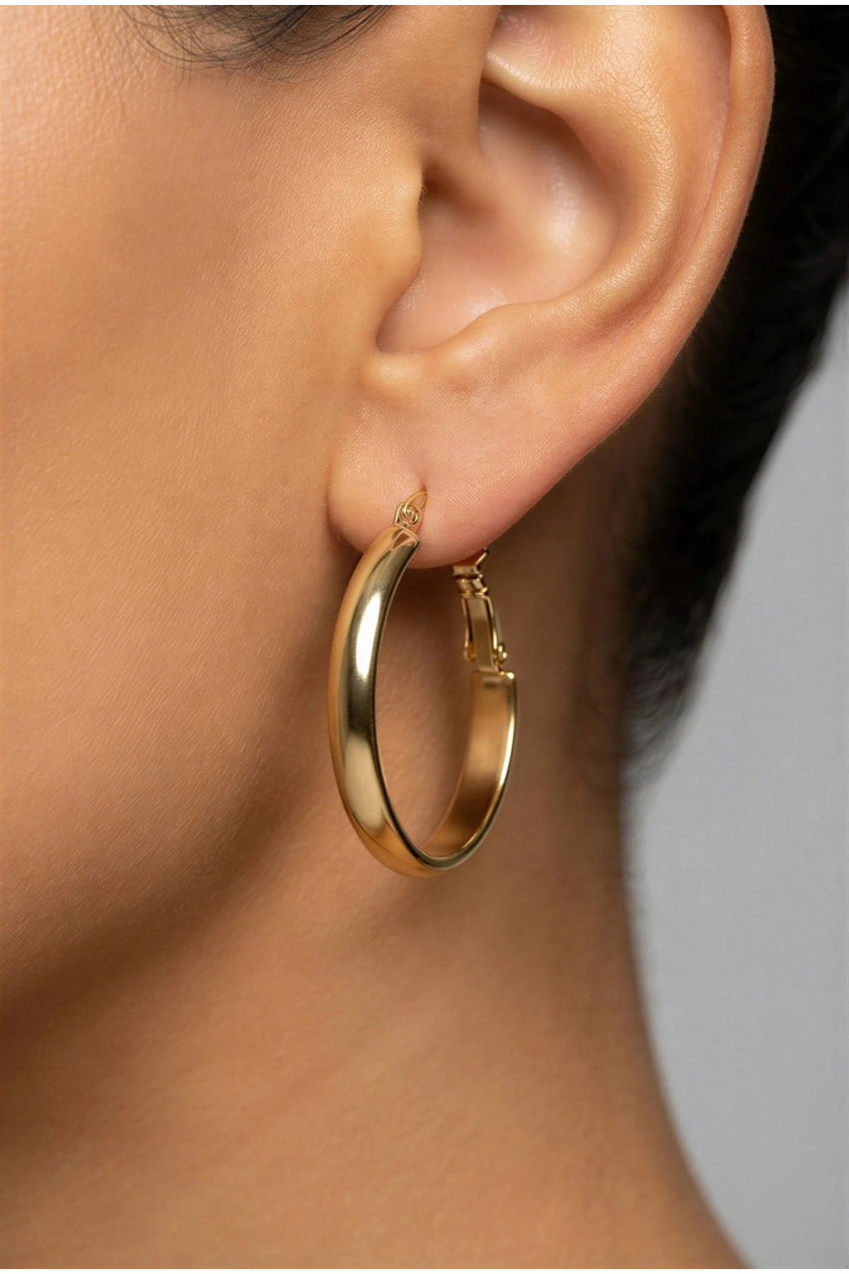 Kalın Halka Model Gold Altın Kaplama Çelik Küpe