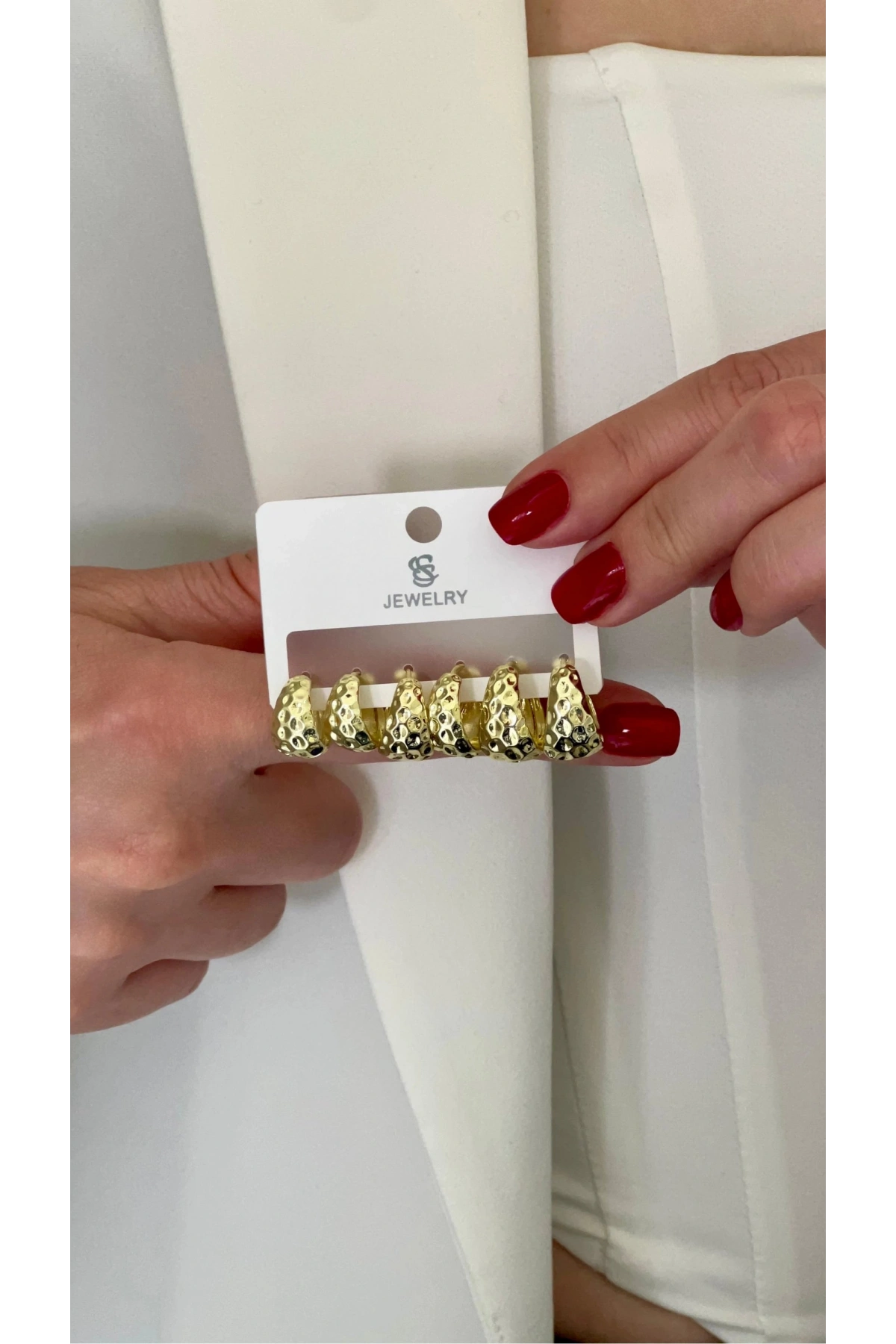 Kalın Oval Dövgü Model Altılı Gold Altın Kaplama Çoklu Küpe