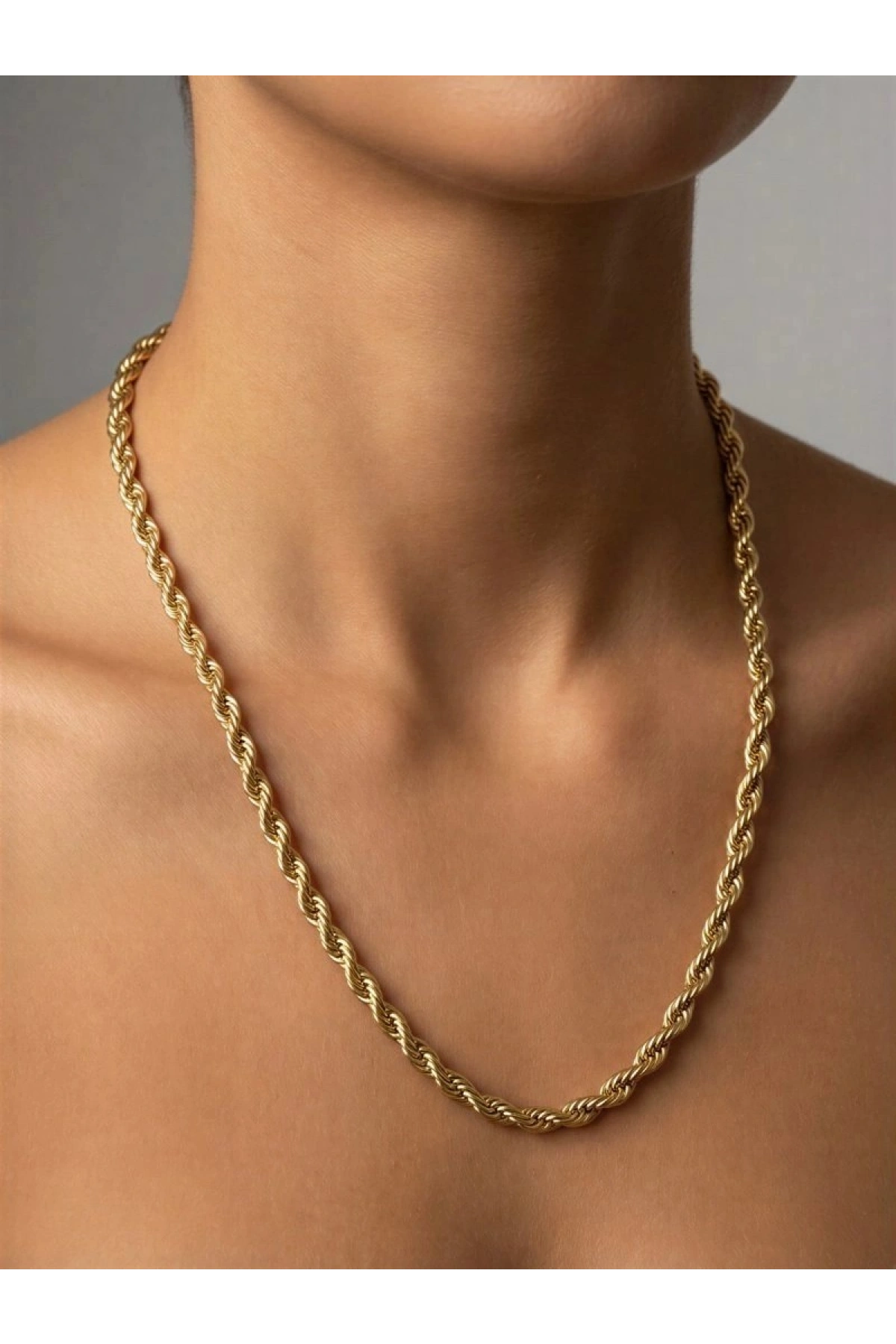 Kalın Uzun Burgu Model Gold Altın Kaplama Çelik Kolye