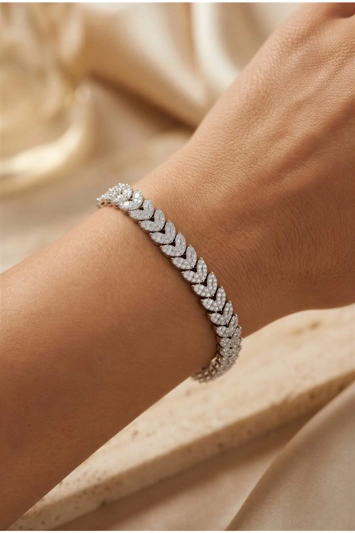 Kalp Model Beyaz Altın Kaplama Bileklik