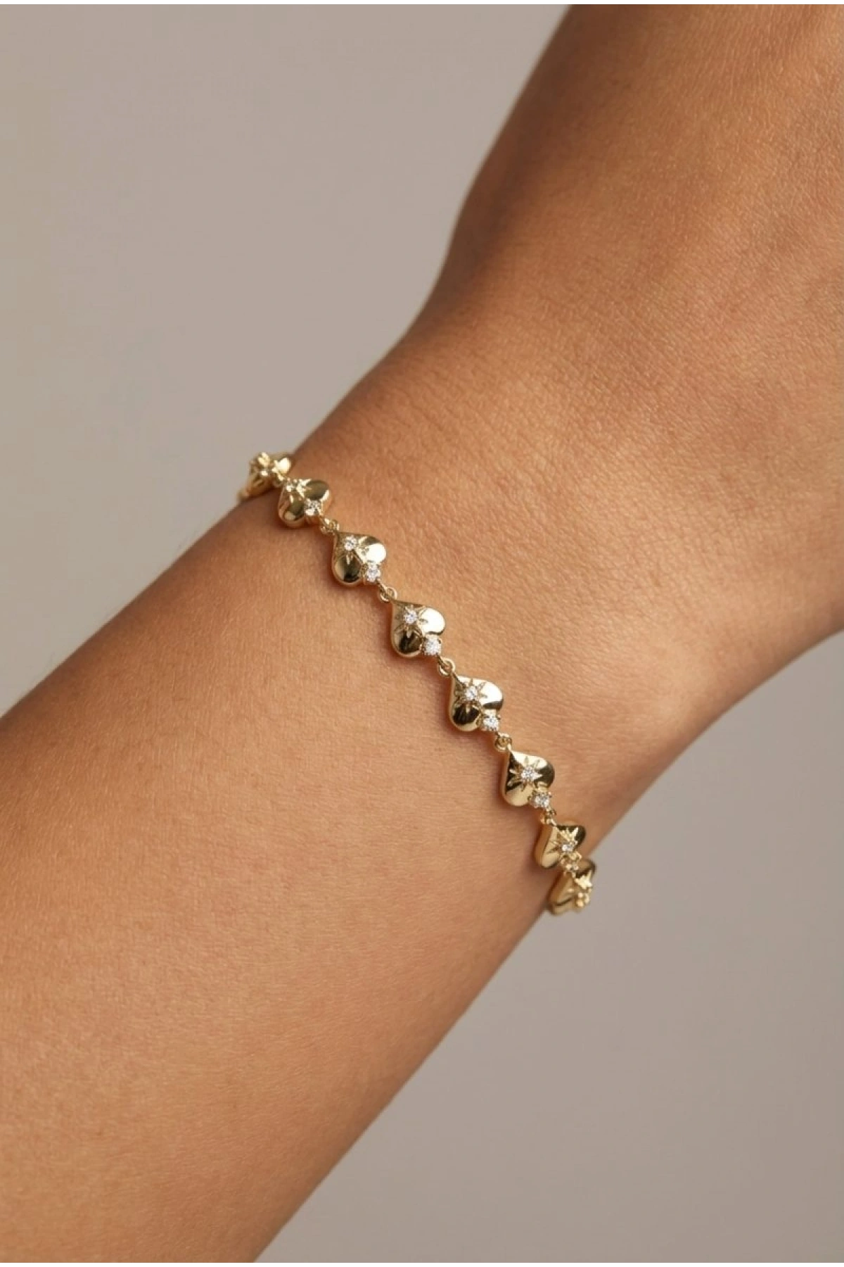 Kalp Model Yıldız Desen Gold Altın Kaplama Bileklik