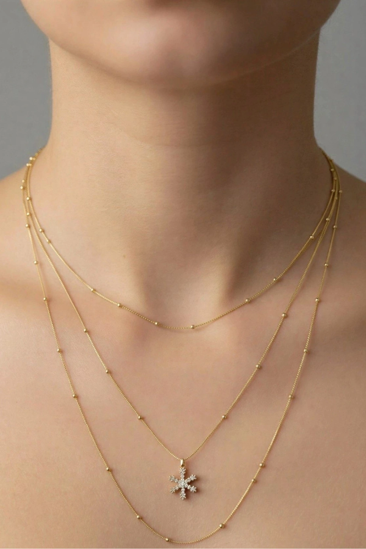 Kar Tanesi Model Gold Altın Kaplama Üçlü Kolye