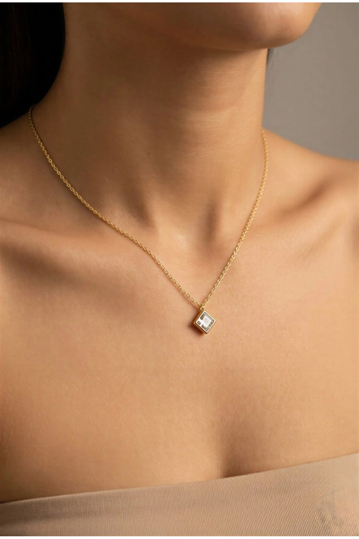 Kare Elmas Model Zarif Gold Altın Kaplama Kolye