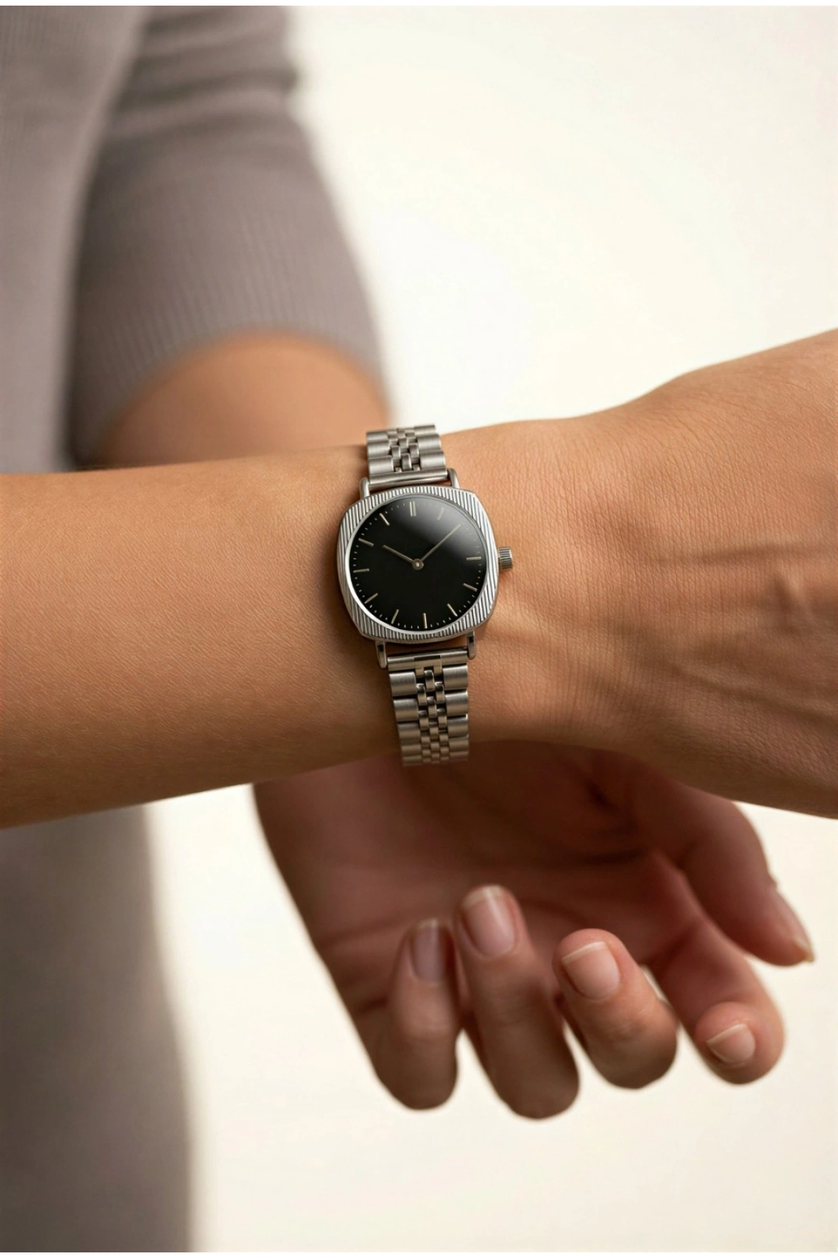 Kare Kordon Çizgi Detay Beyaz Kadın Kol Saati