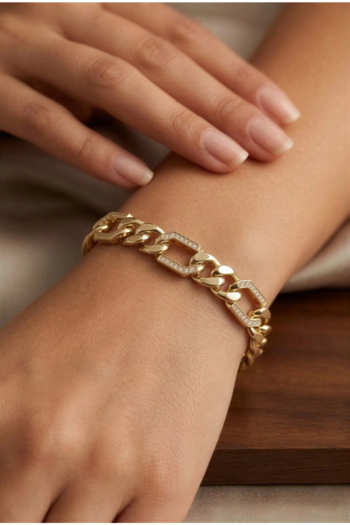 Kayık Model Taş Detay Gold Altın Kaplama Bileklik