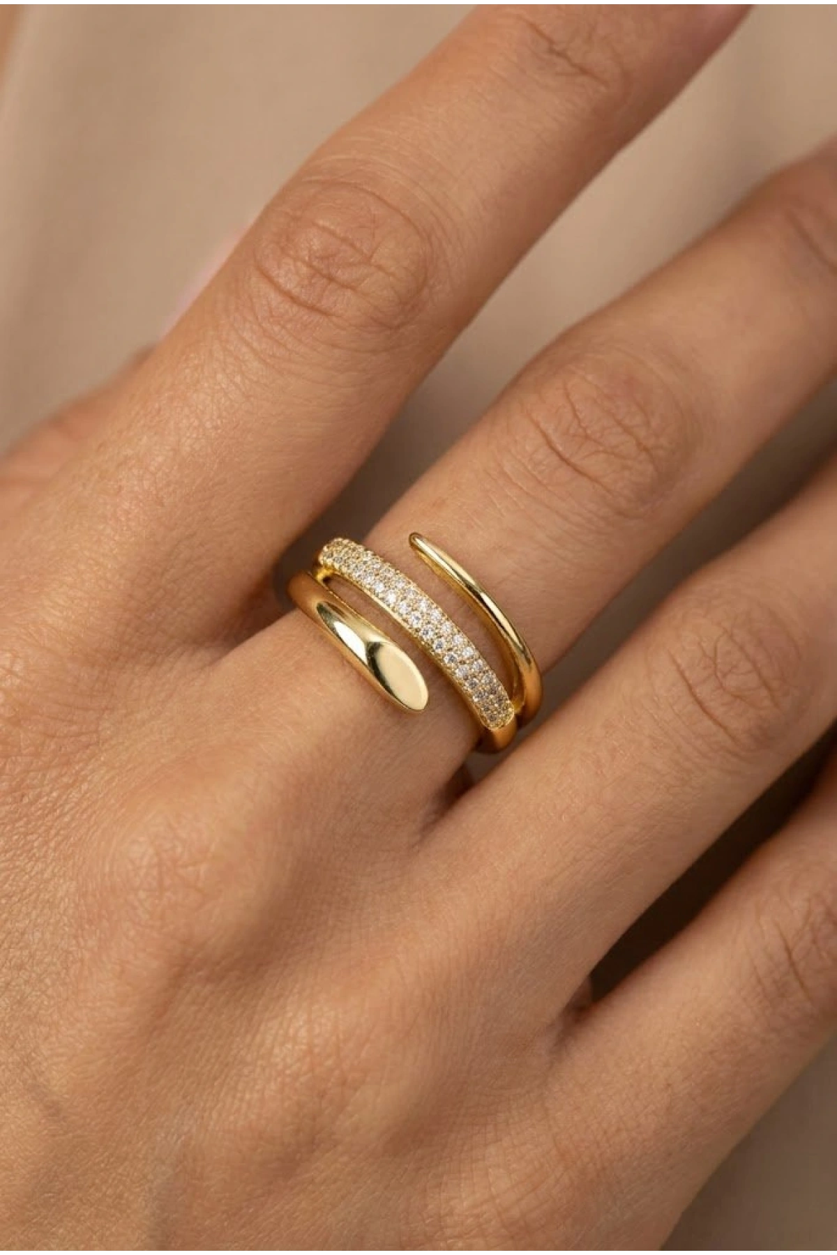 Kesik Model Gold Altın Kaplama Ayarlanabilir Yüzük