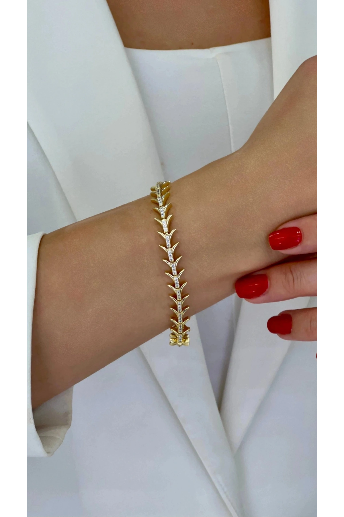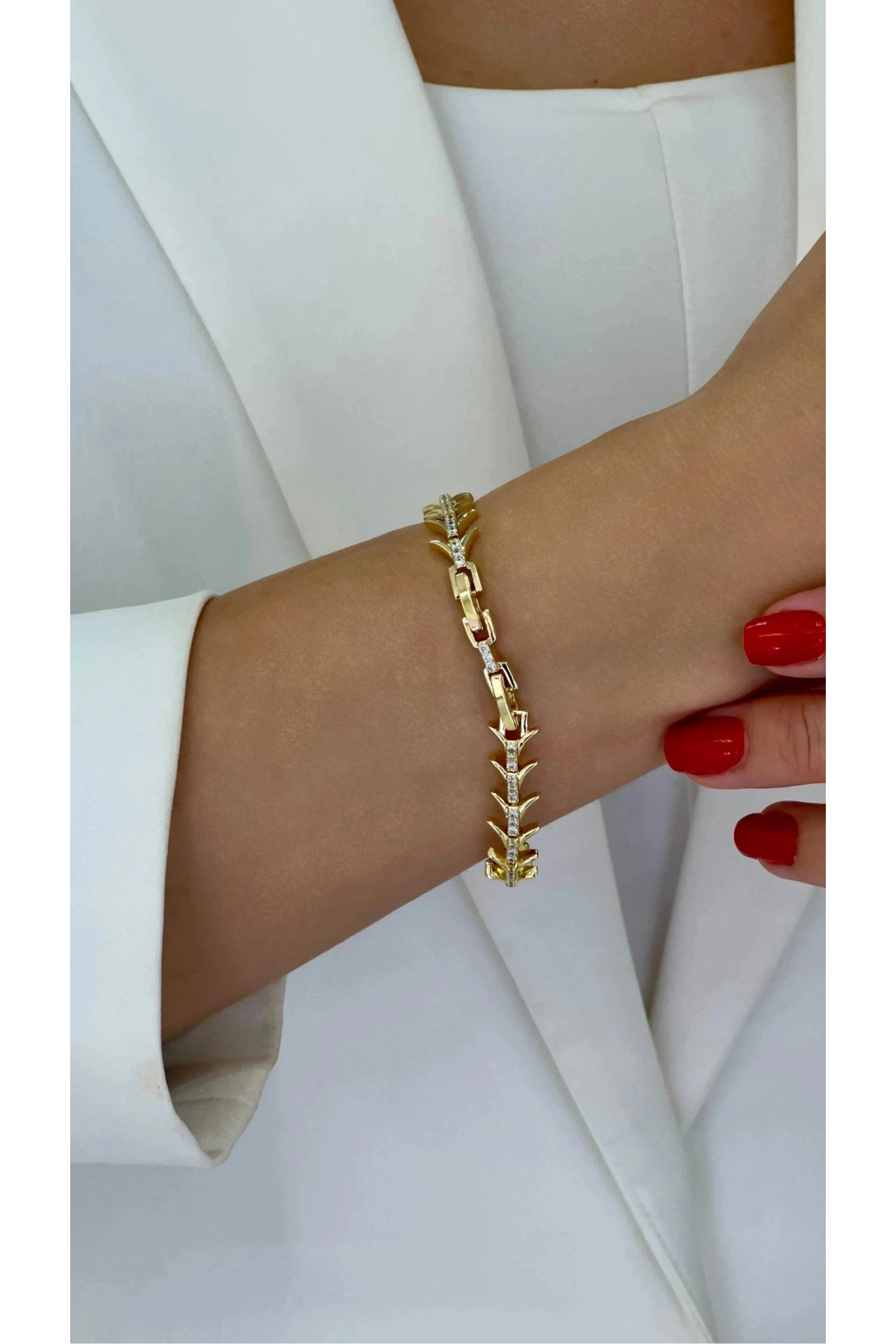 Kılçık Model Taş Detay Gold Altın Kaplama Bileklik, zarif ve şık tasarımıyla öne çıkan bir aksesuardır.