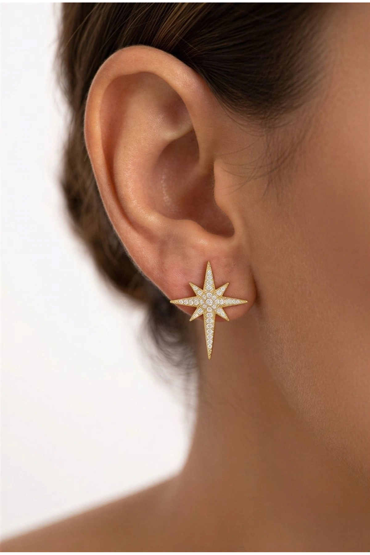 Kuzey Yıldızı Model Gold Altın Kaplama Küpe
