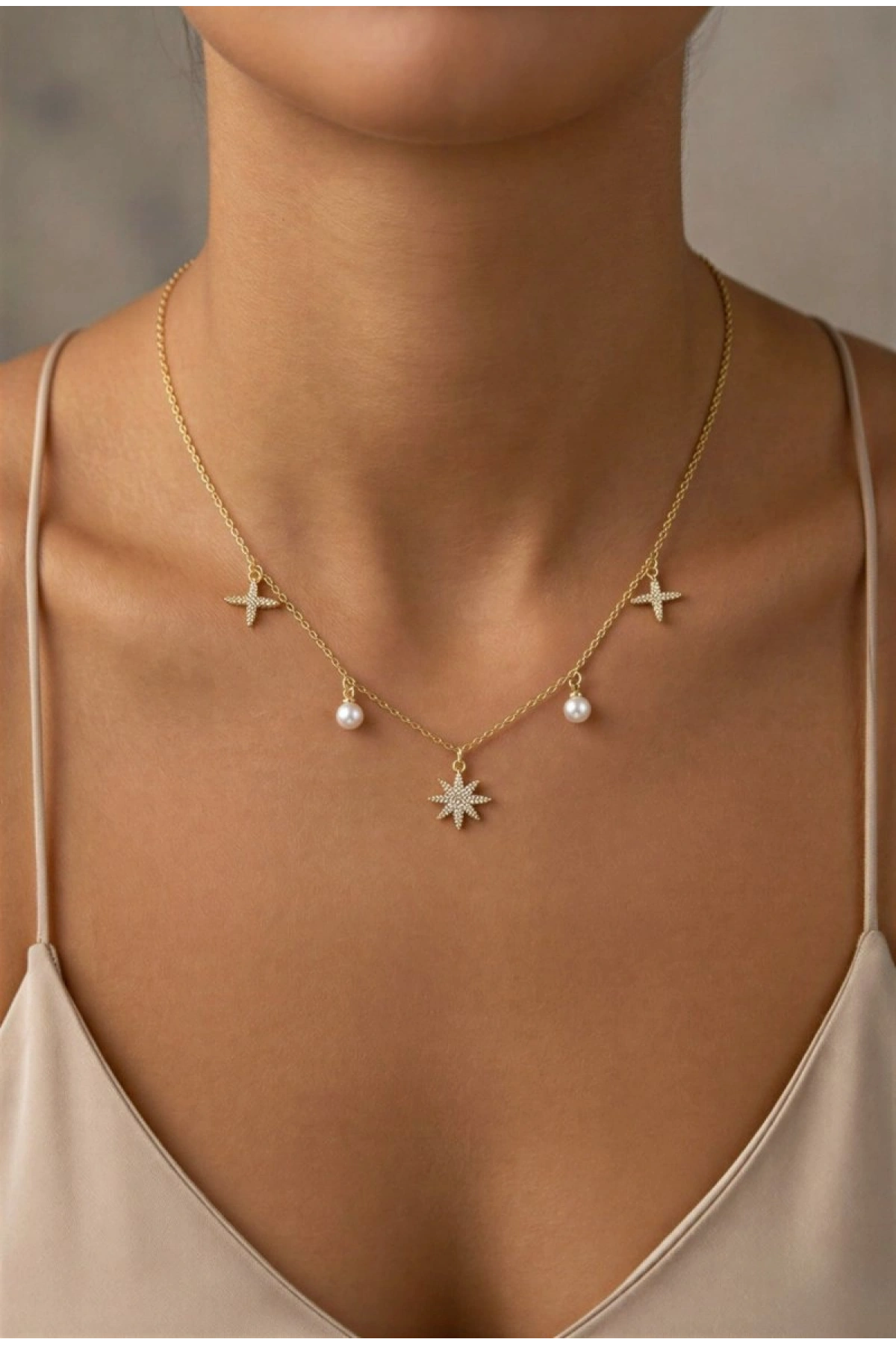 Kuzey Yıldızı Model Zarif Gold Altın Kaplama Kolye