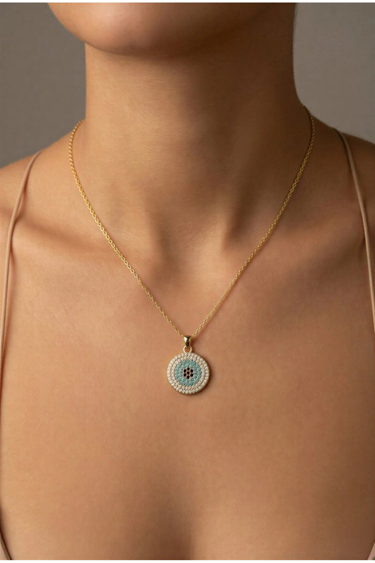 Mavi Göze Model Zarif Gold Altın Kaplama Kolye