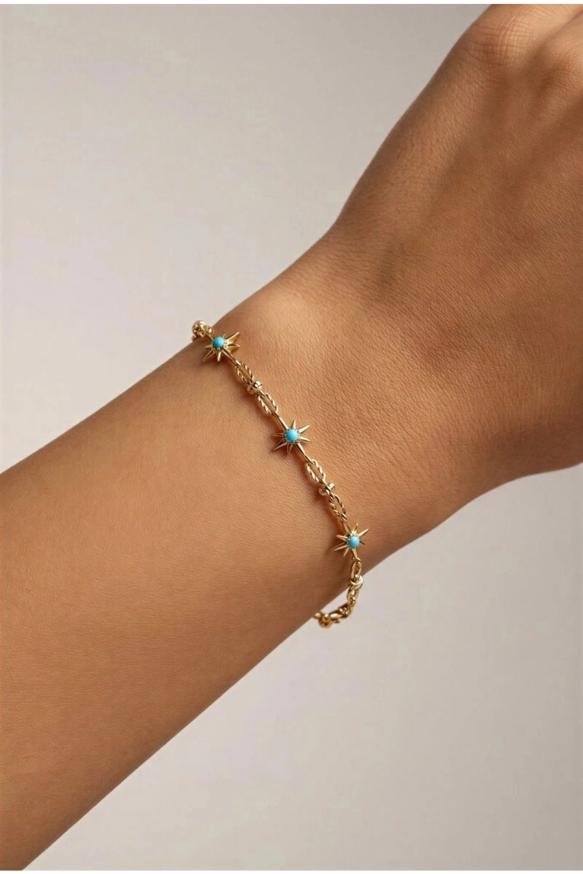 Mavi Taşlı Yıldız Model Gold Altın Kaplama Bileklik