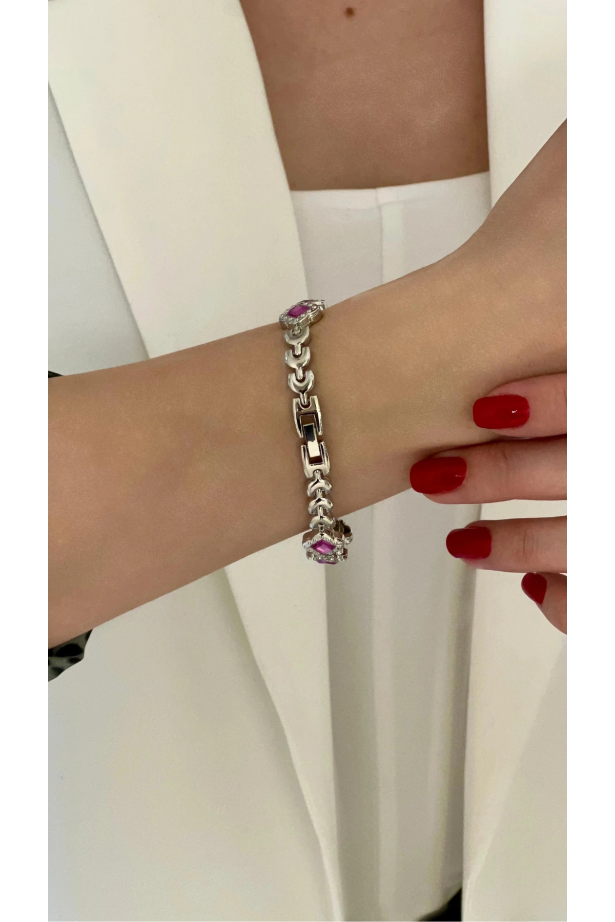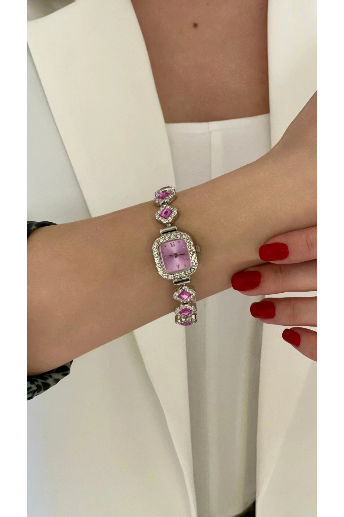 Metal Kordon Mor Taş Beyaz Kadın Kol Saati