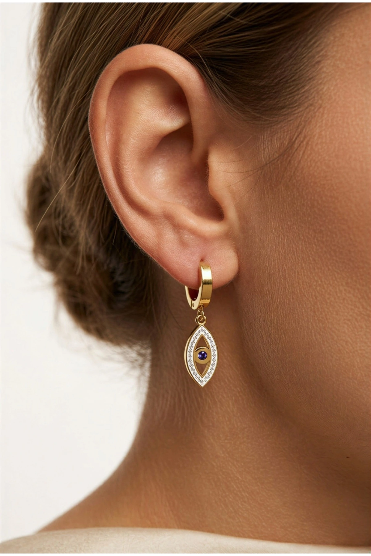 Nazar Boncuk Model Çelik Gold Altın Kaplama Küpe