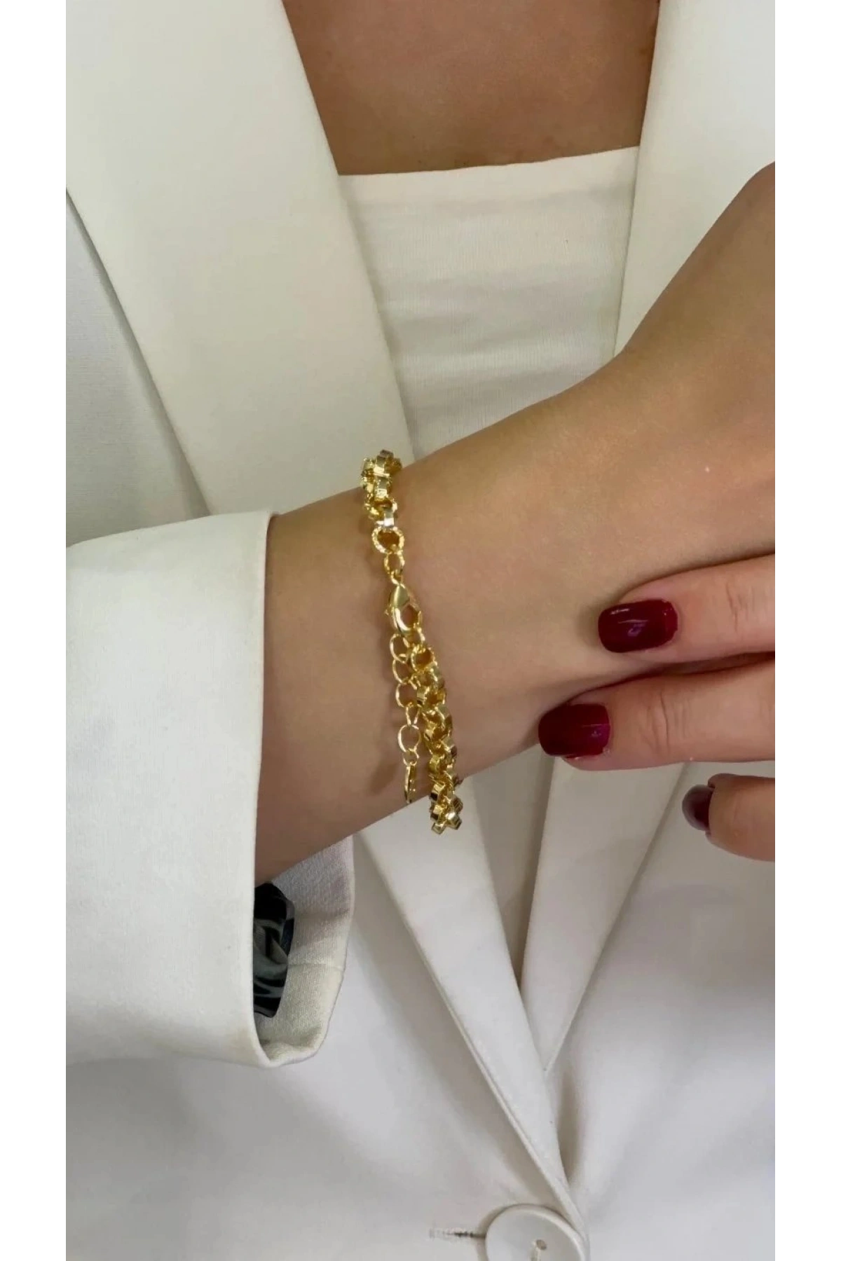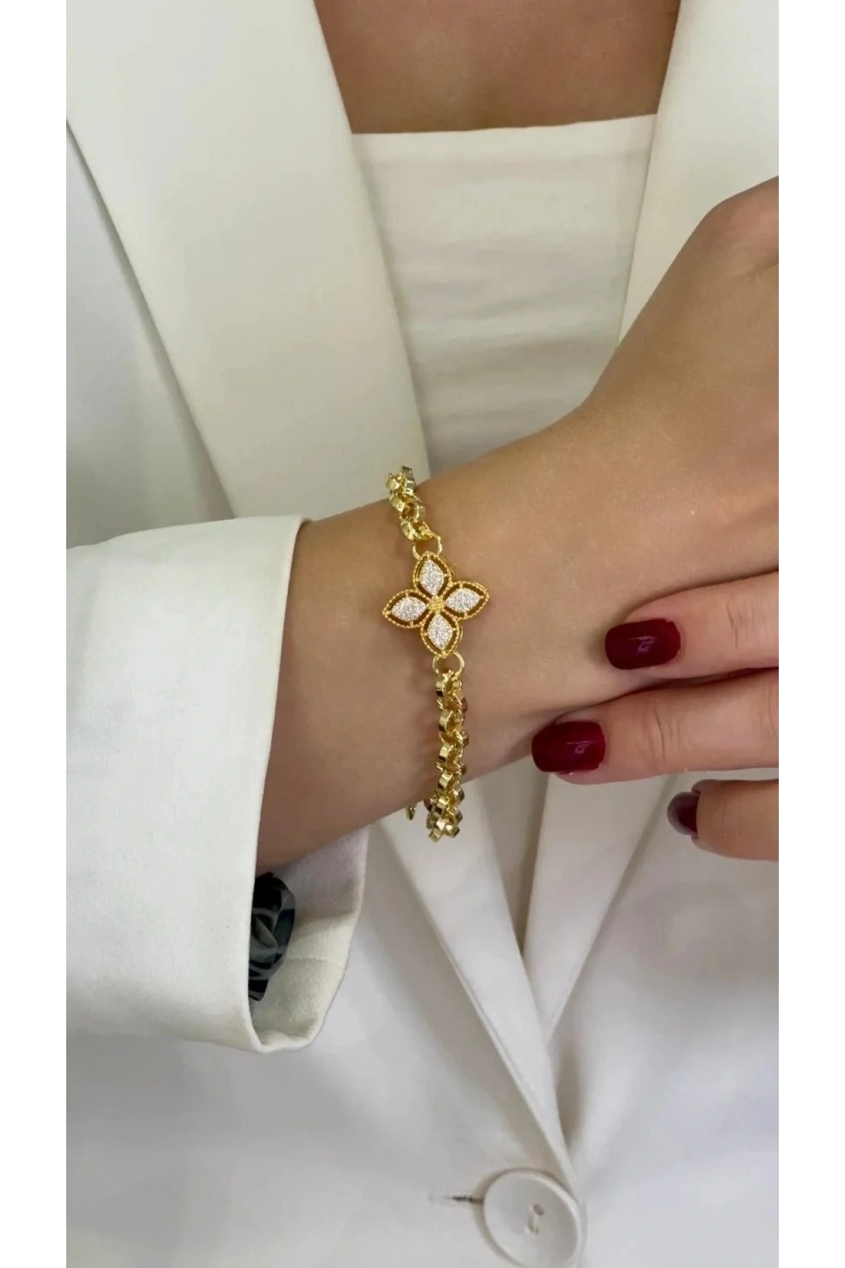 Olimpos Zincir Yonca Detay Gold Altın Kaplama Bileklik