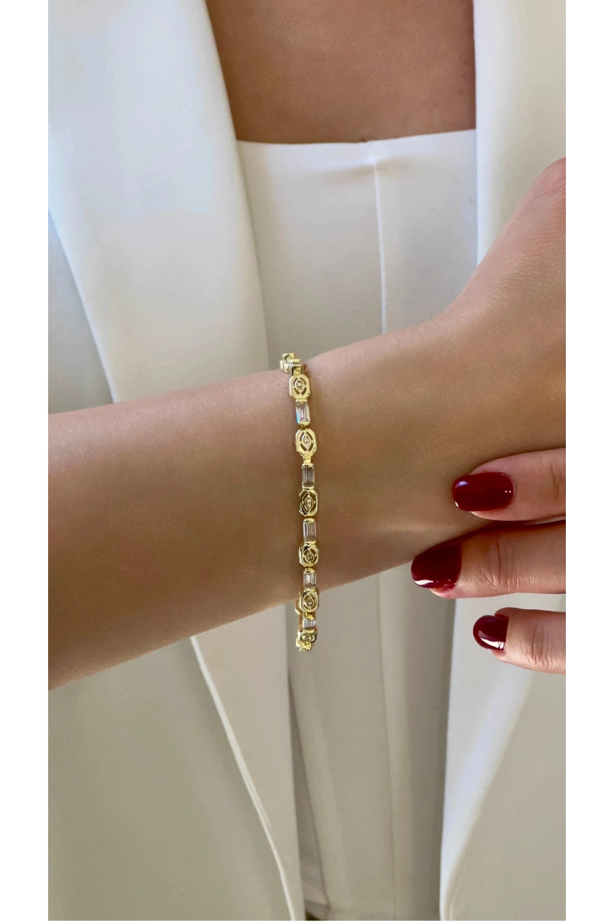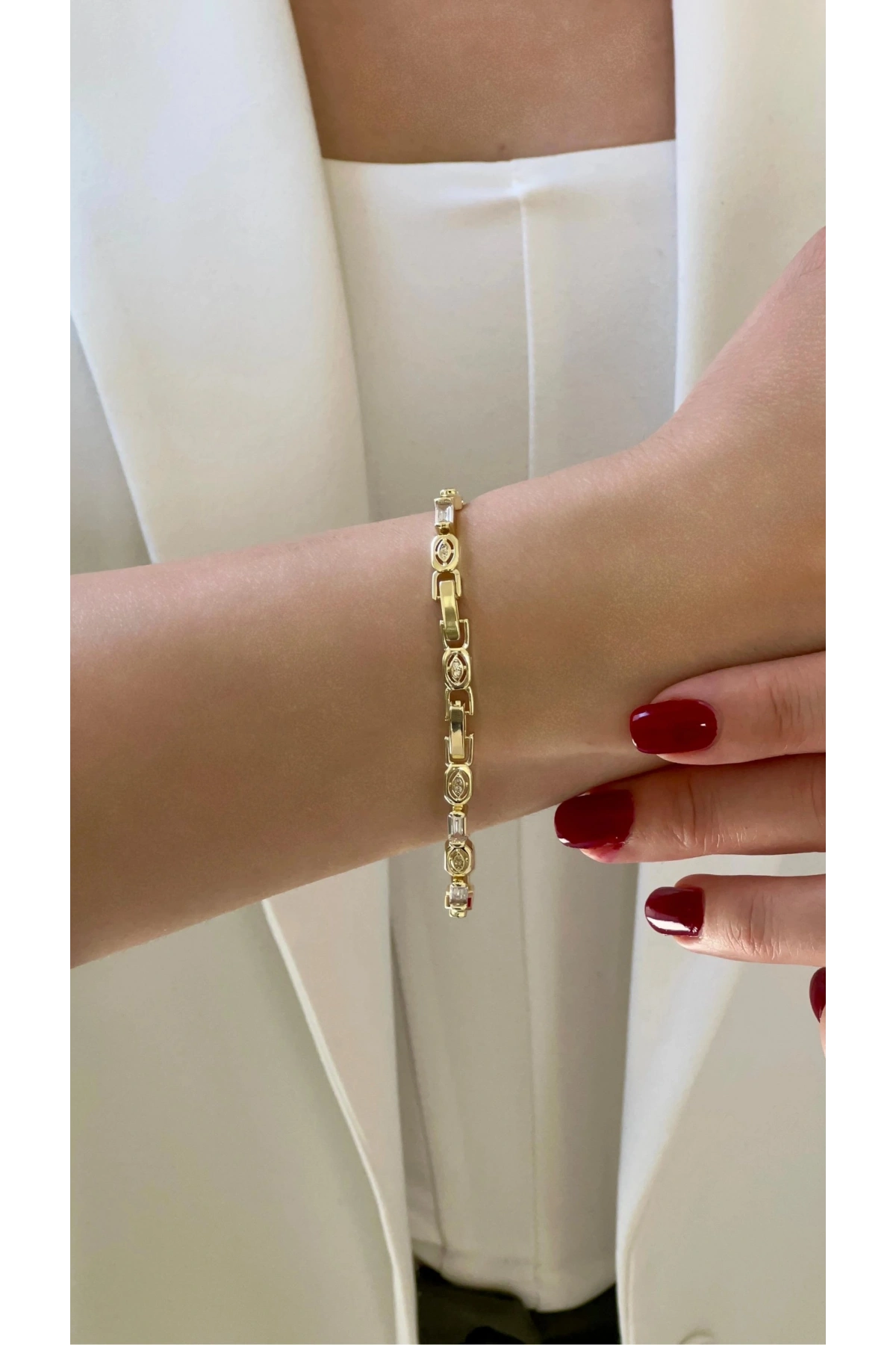Oval Taş Model Baget Detay Gold Altın Kaplama Bileklik