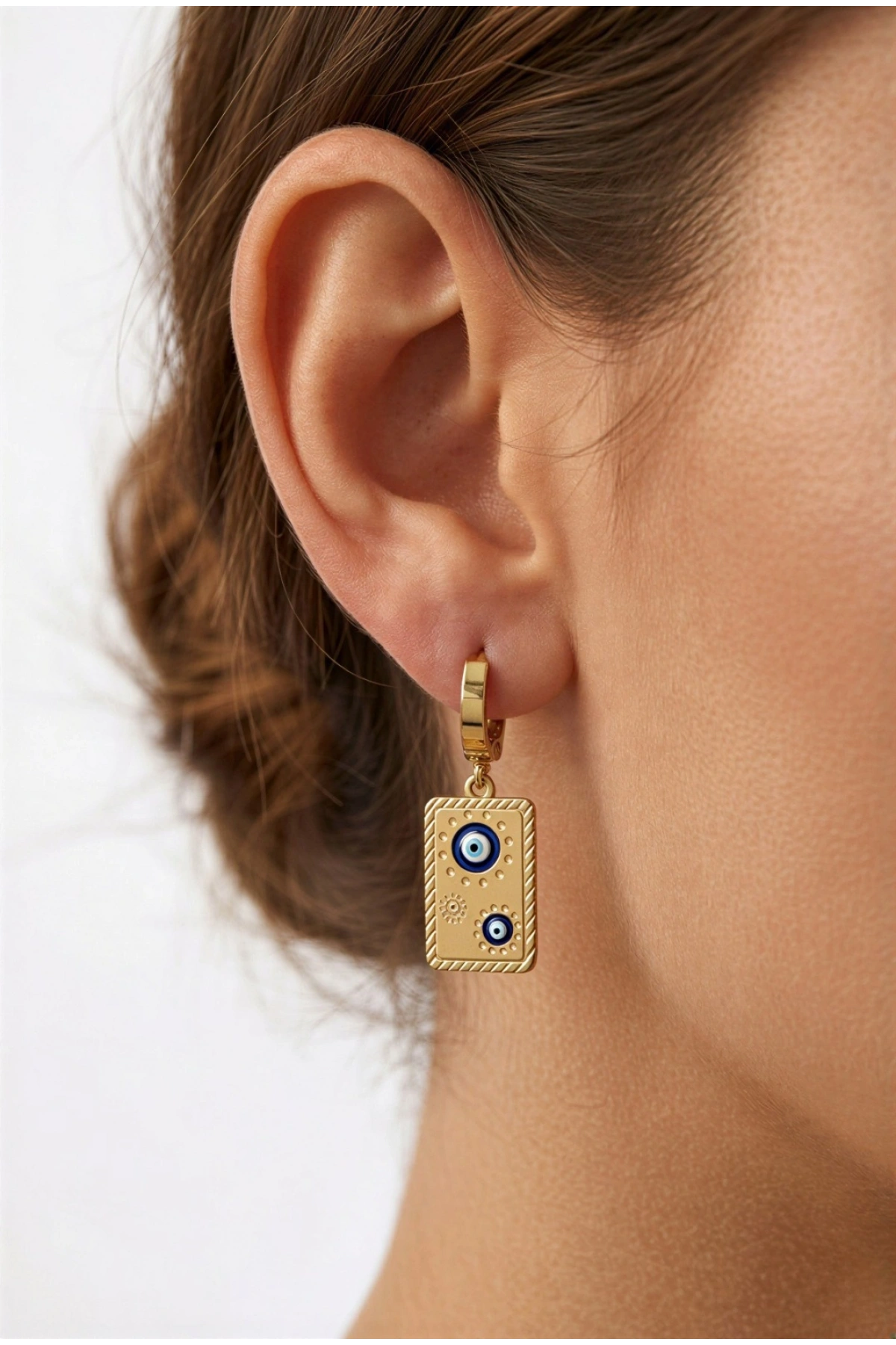 Plaka Nazar Boncuk Model Gold Altın Kaplama Çelik Küpe