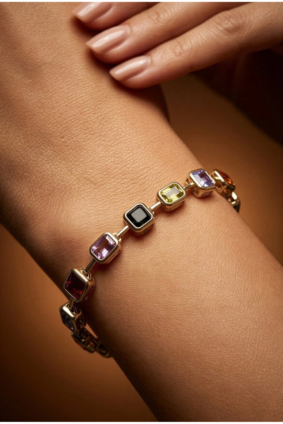 Renkli Kare Dikdörtgen Model Gold Altın Kaplama Bileklik