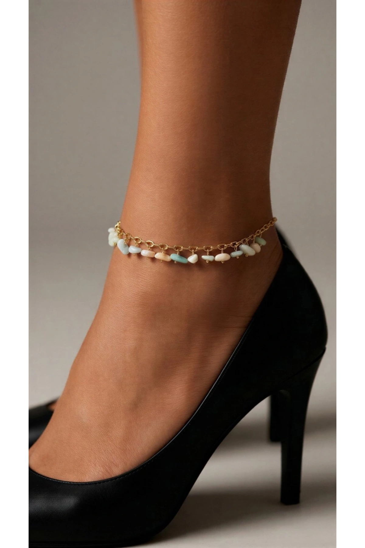 Renkli Taş Model Gold Altın Kaplama Halhal