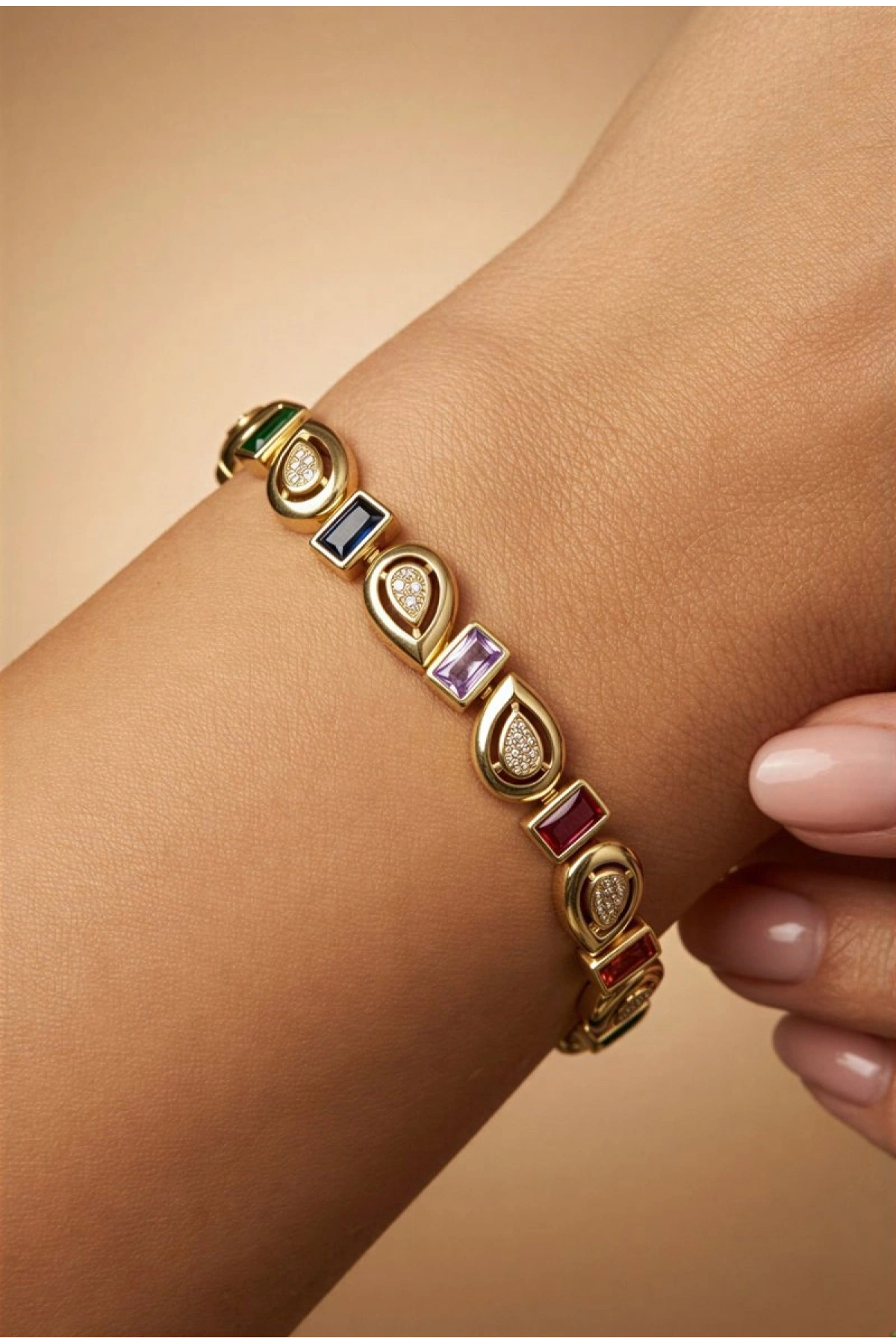 Renkli Ters Damla Model Gold Altın Kaplama Bileklik