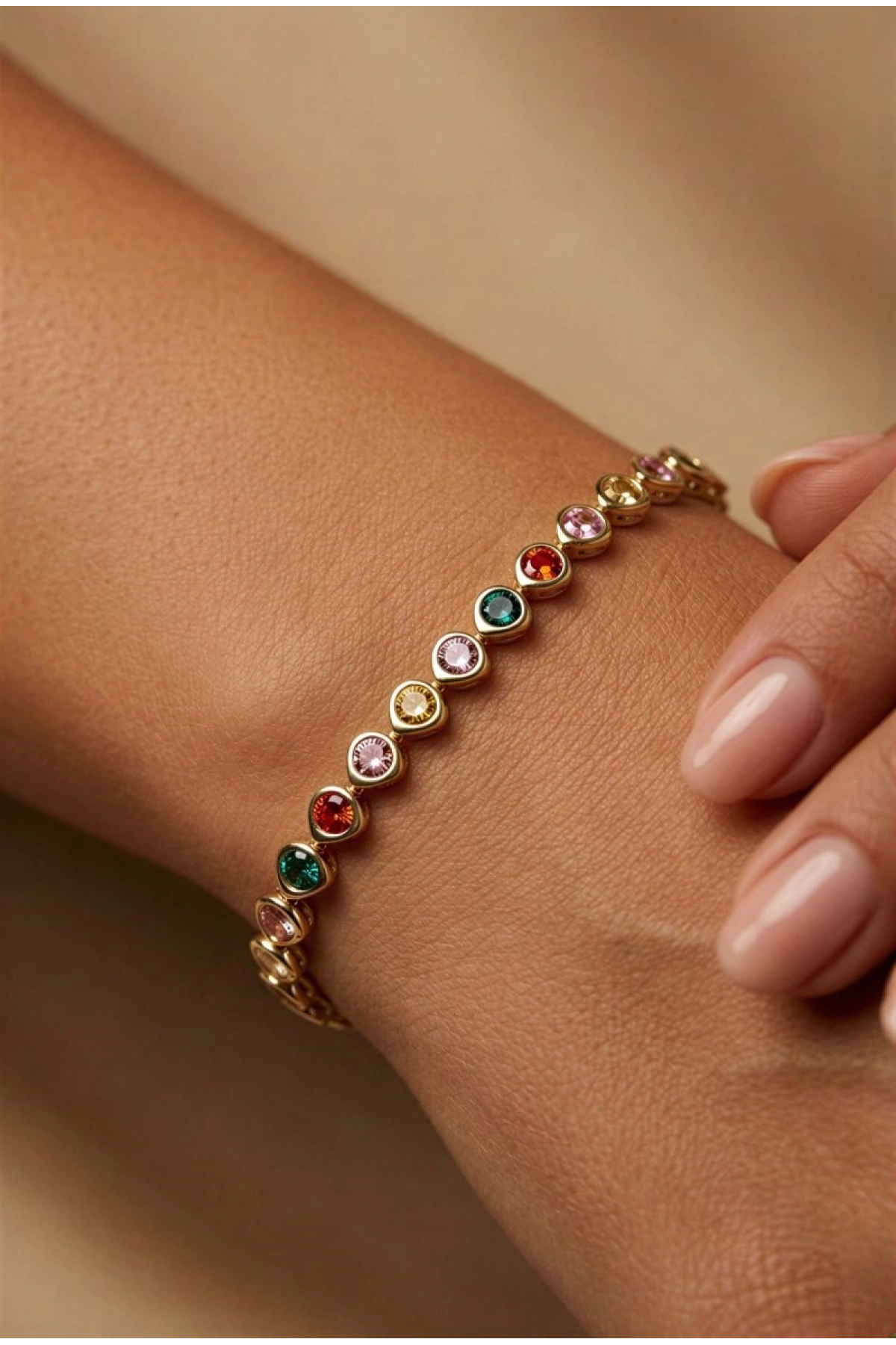 Renkli Üçgen Model Gold Altın Kaplama Bileklik