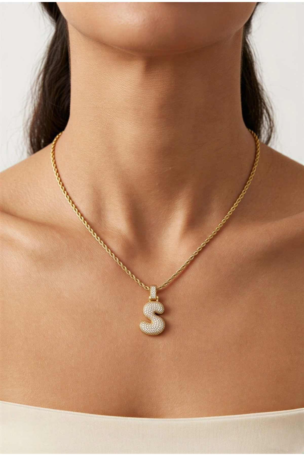 S Harf Zirkon Taşlı Balon Gold Altın Kaplama Burgu Kolye
