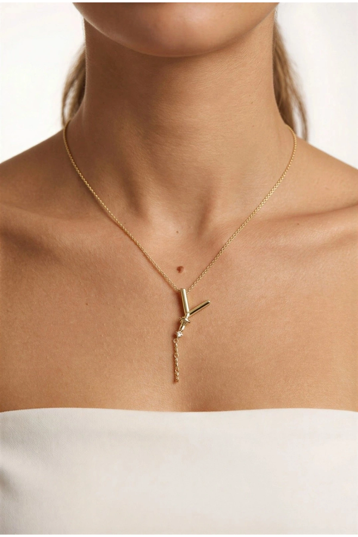 Sallantı Model Y Harf Detay Gold Altın Kaplama Kolye