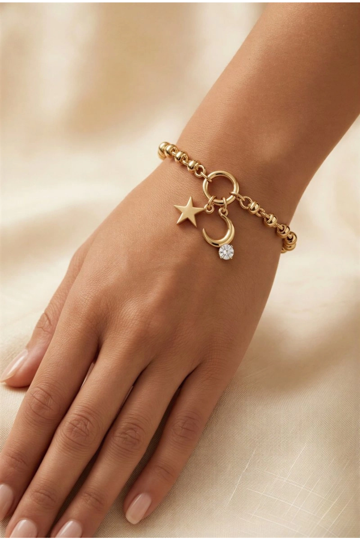 Sallantılı Ay Yıldız Model Gold Altın Kaplama Bileklik