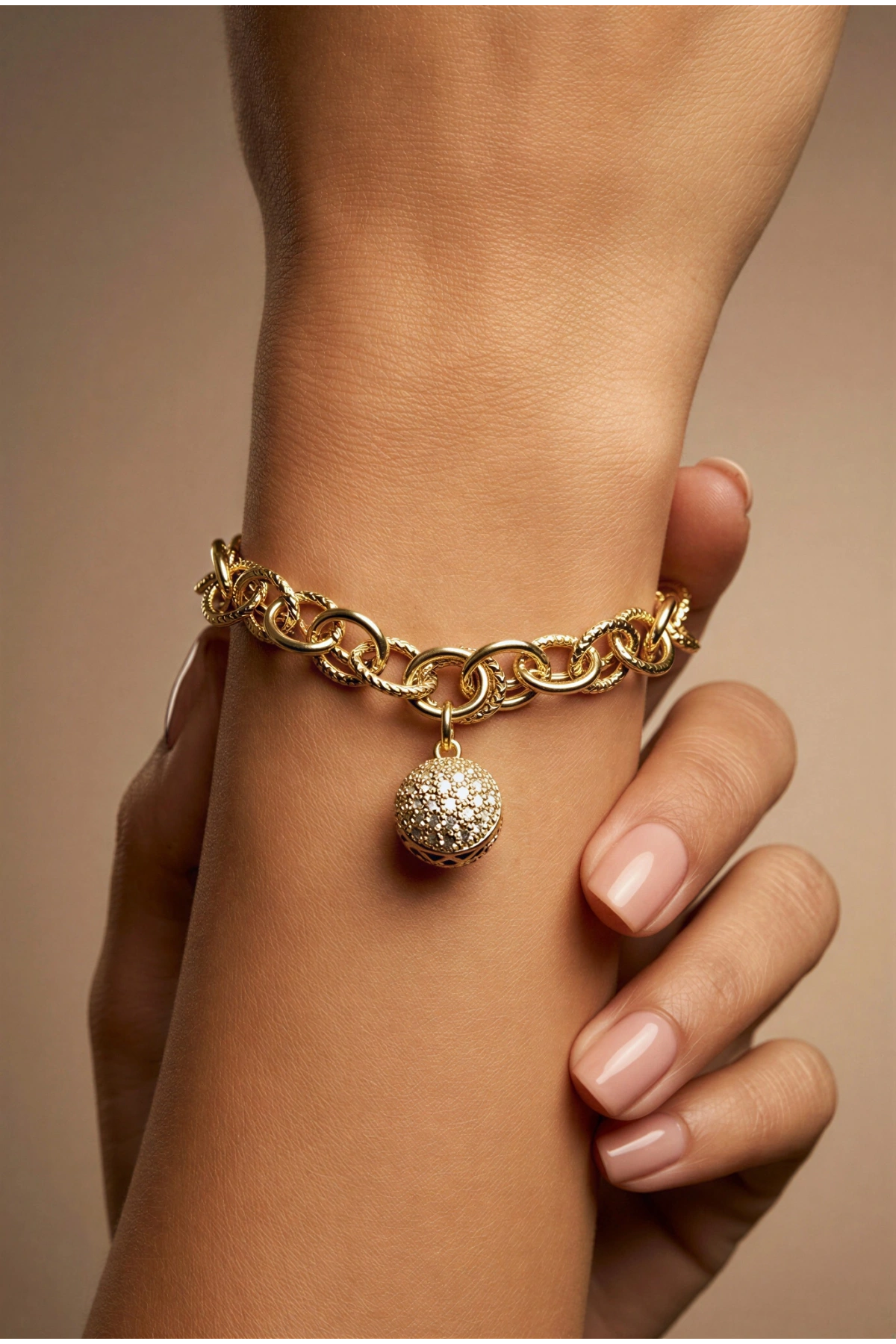 Sallantılı Beyaz Top Model Gold Altın Kaplama Bileklik