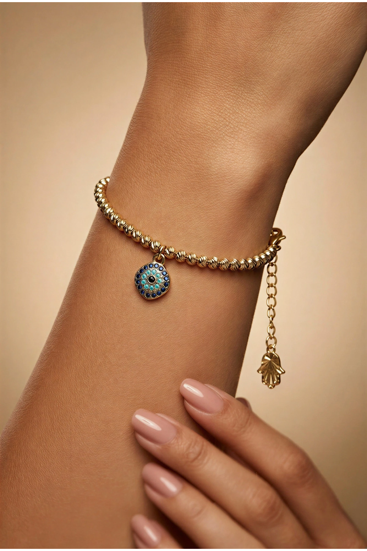 Sallantılı Nazar Boncuğu Model Gold Altın Kaplama Bileklik