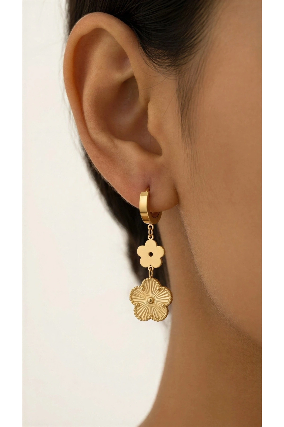 Sallantılı Yonca Model Gold Altın Kaplama Çelik Küpe
