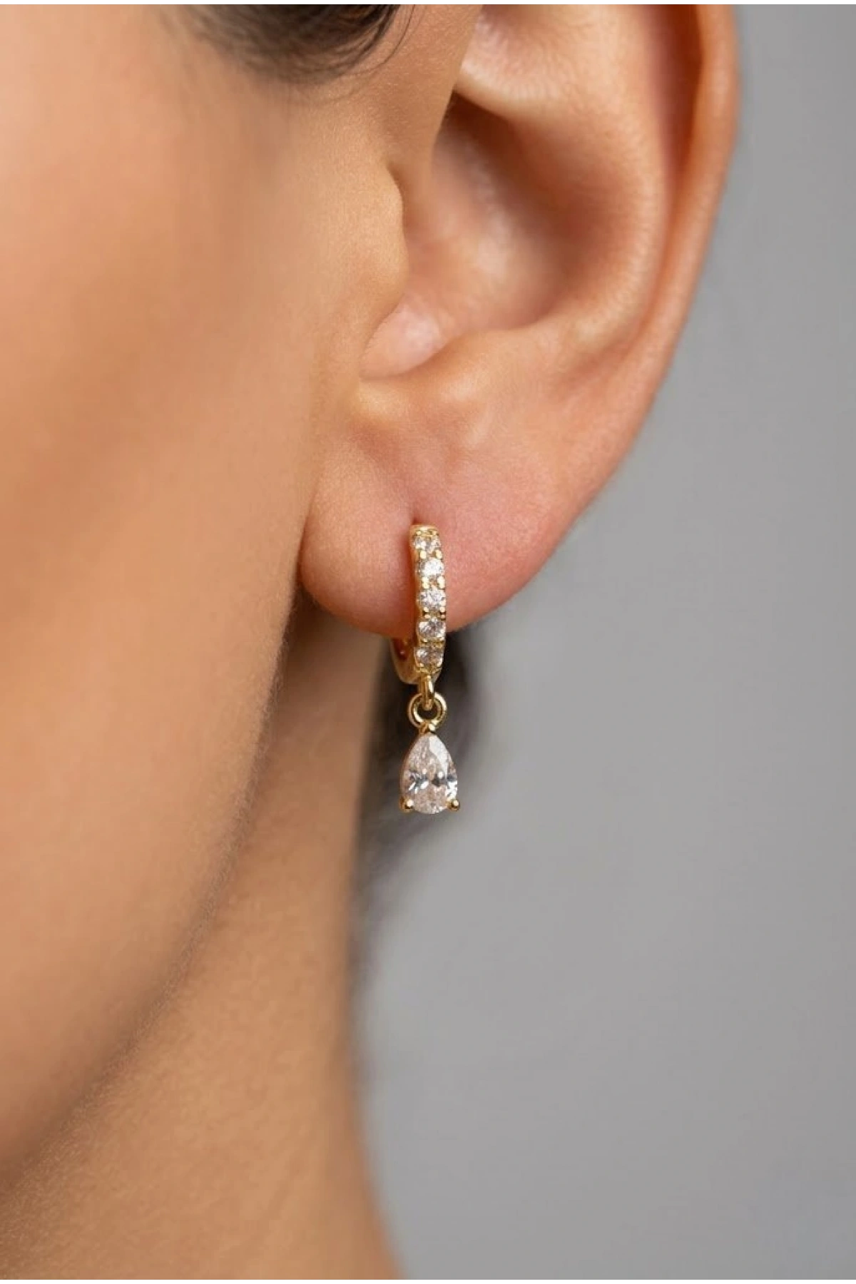 Sarkıt Damla Model Gold Altın Kaplama Küpe