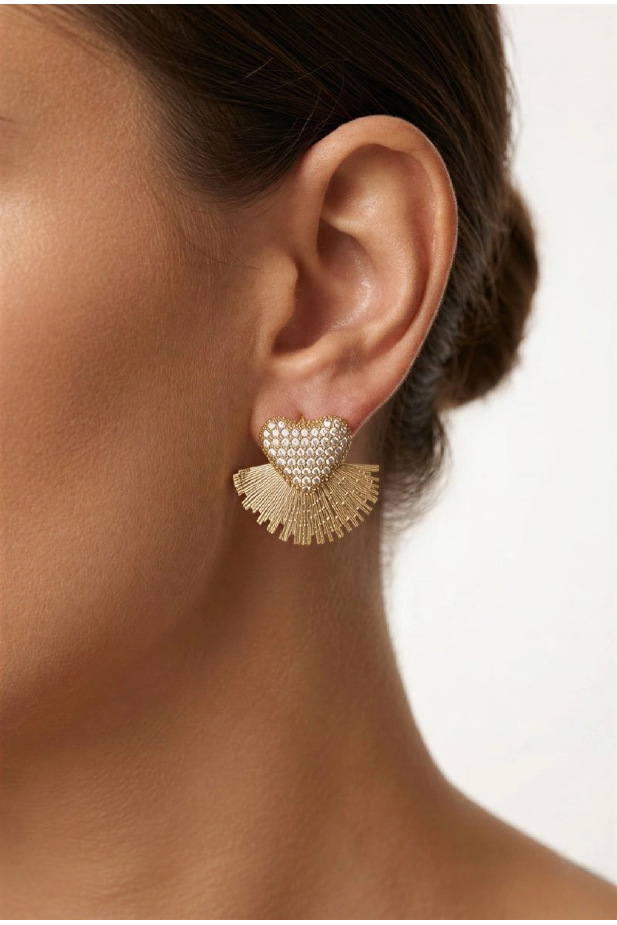 Sarkıt Kalp Model Gold Altın Kaplama Küpe