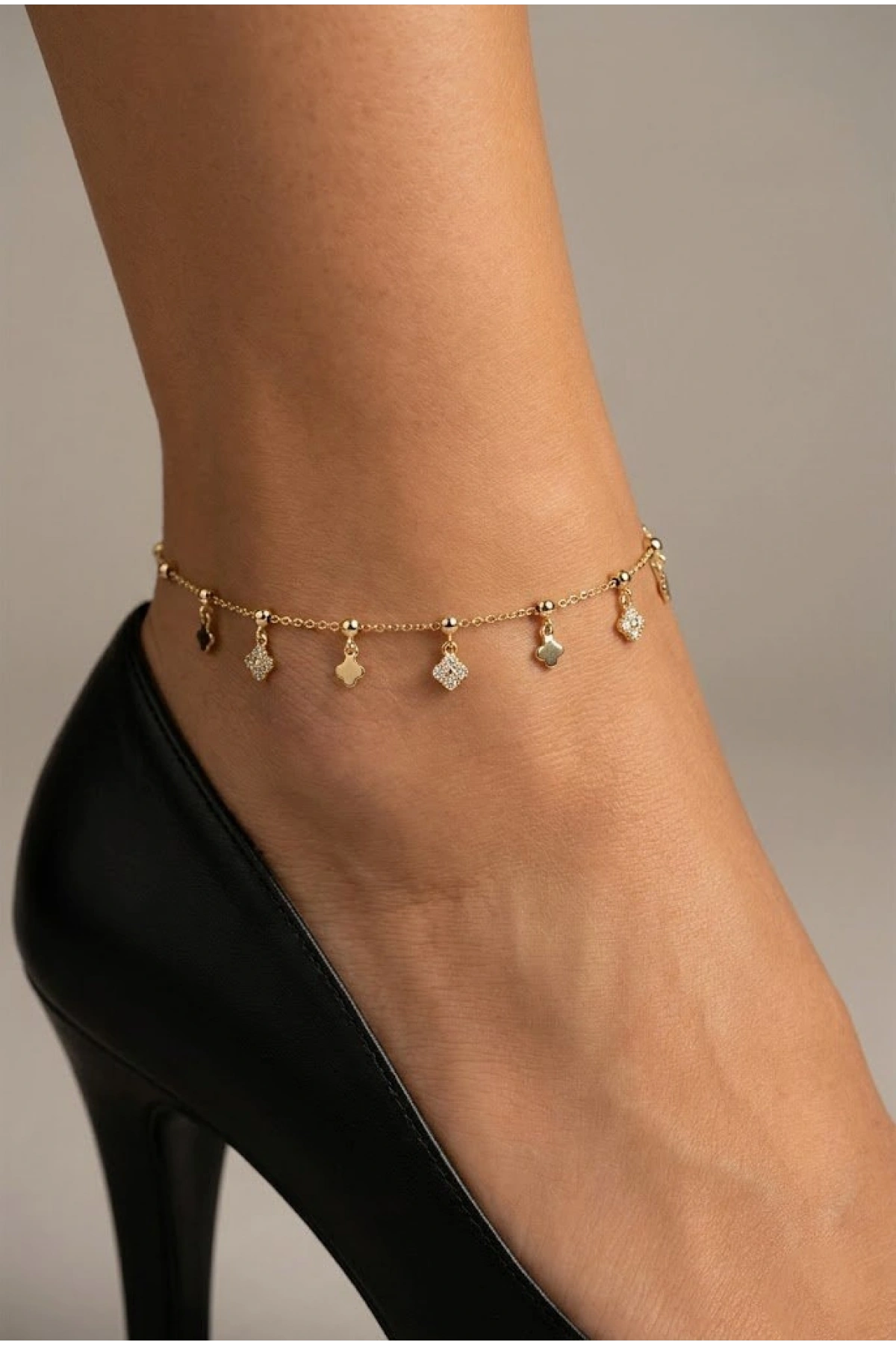 Sarkıt Taşlı Yonca Model Gold Altın Kaplama Halhal