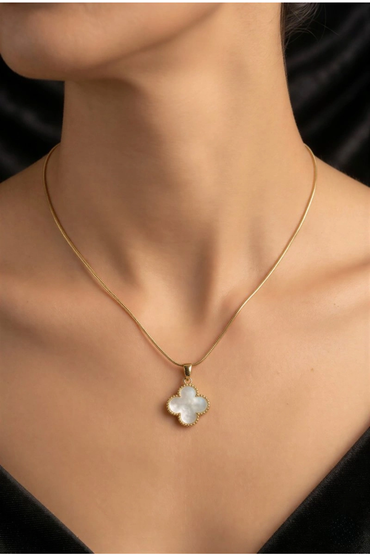 Sedef Detay Yonca Model Gold Altın Kaplama Kolye
