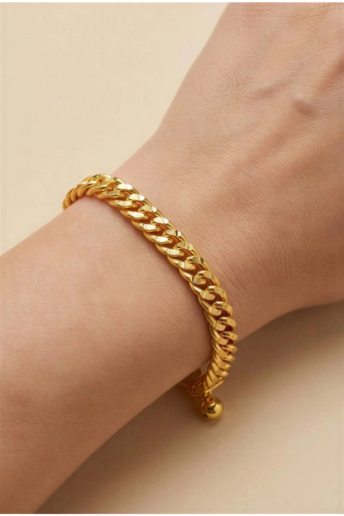 Sim Detay İnce Ezik Bağlı Model Gold Altın Kaplama Bileklik