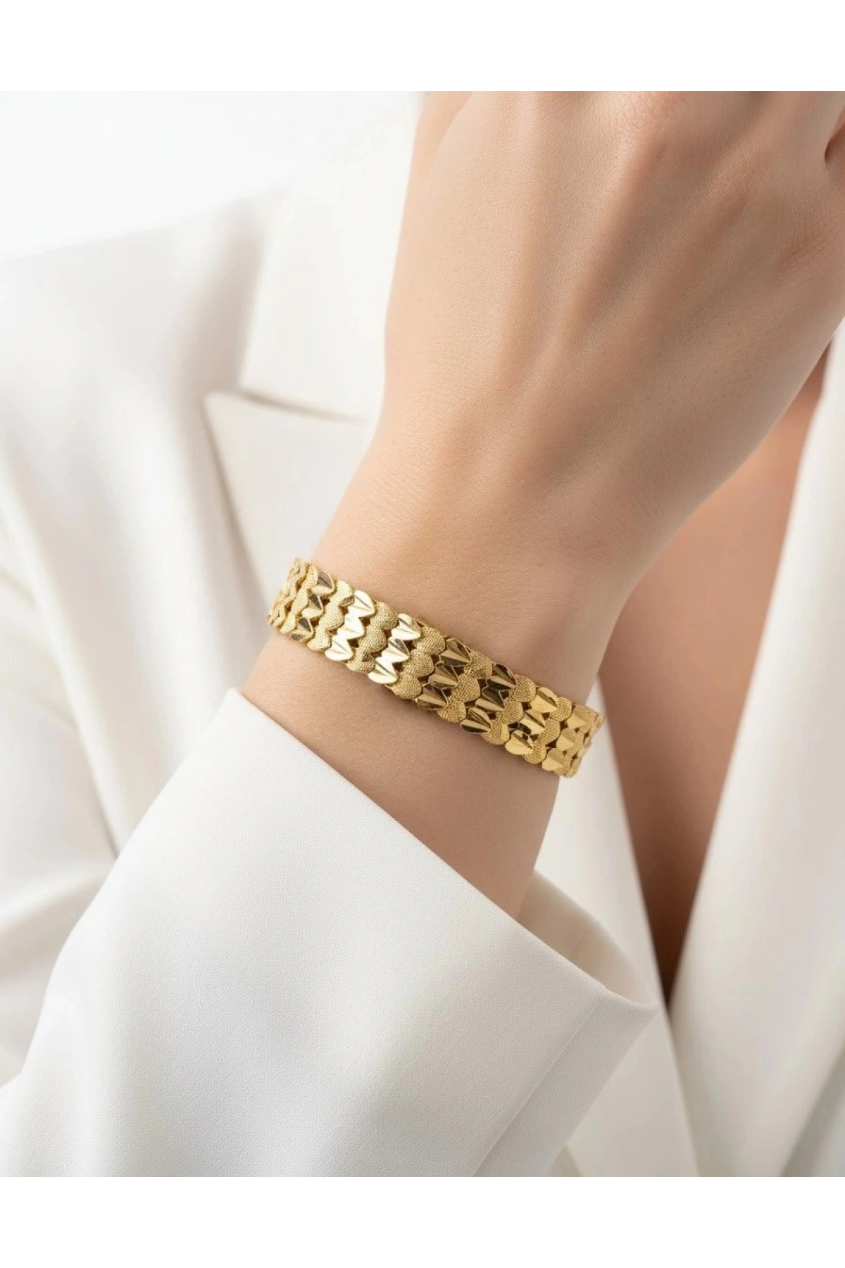 Sim Detay Sıra Kalp Model Gold Altın Kaplama Kuyum Bileklik