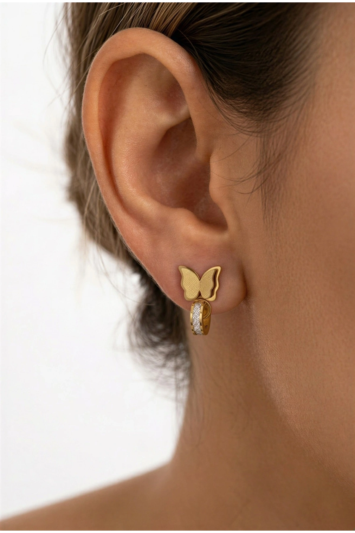 Simli Kelebek Model Silindir Gold Altın Kaplama Çelik Küpe
