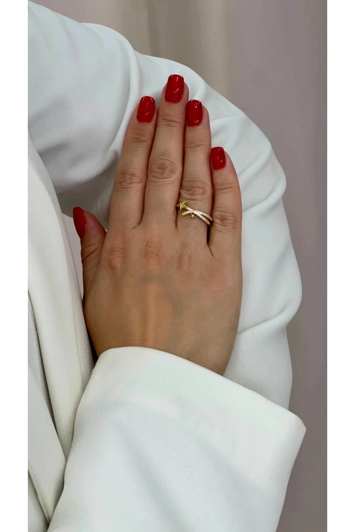 Sıra Taşlı Yıldız Model Gold Altın Kaplama Yüzük