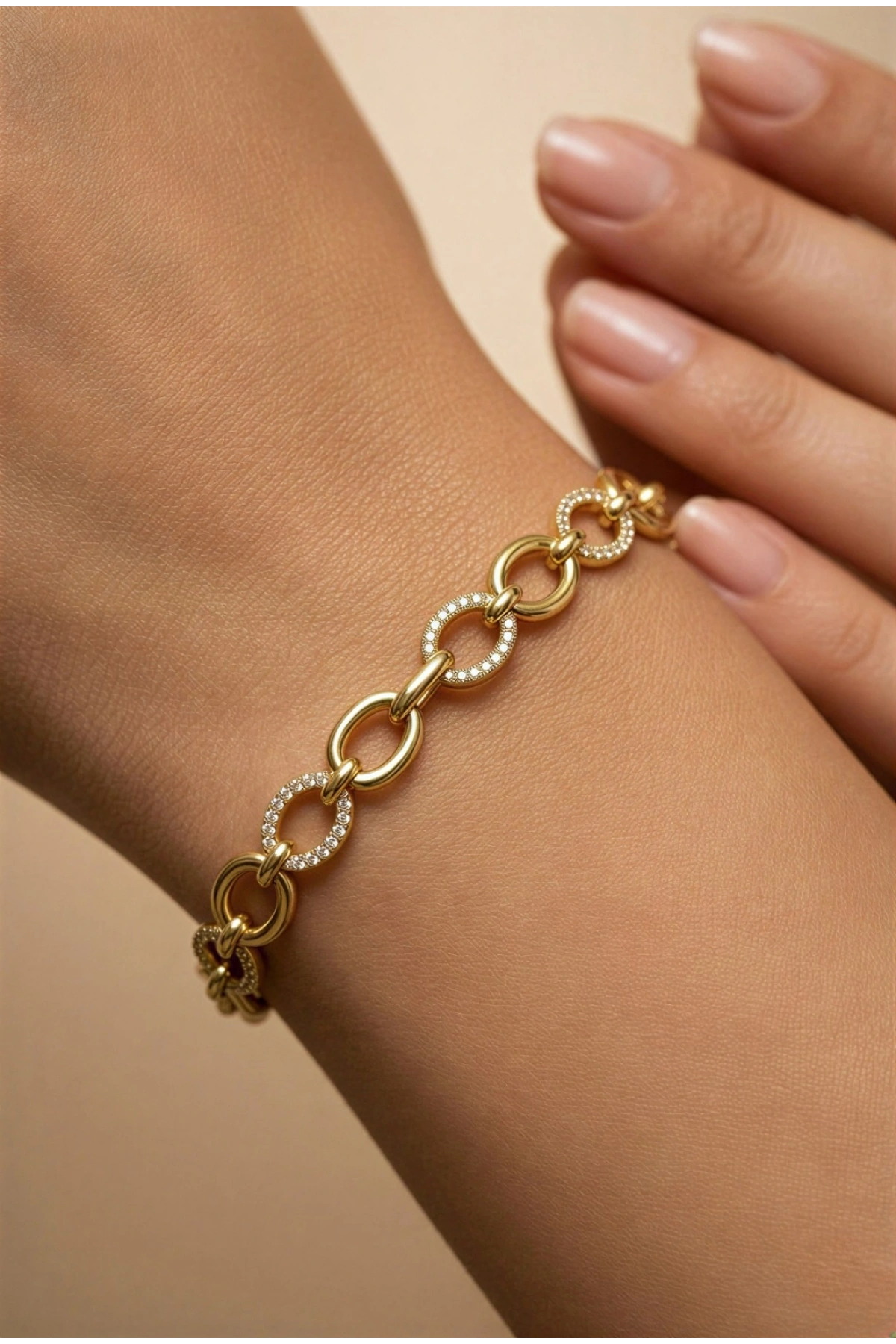 Sıralı Düz Halka Model Taş Detay Gold Altın Kaplama Bileklik