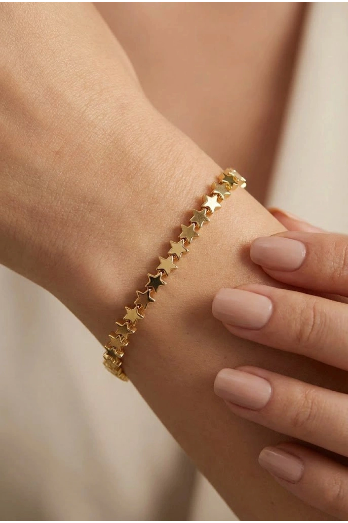 Sıralı Düz Yıldız Model Gold Altın Kaplama Bileklik