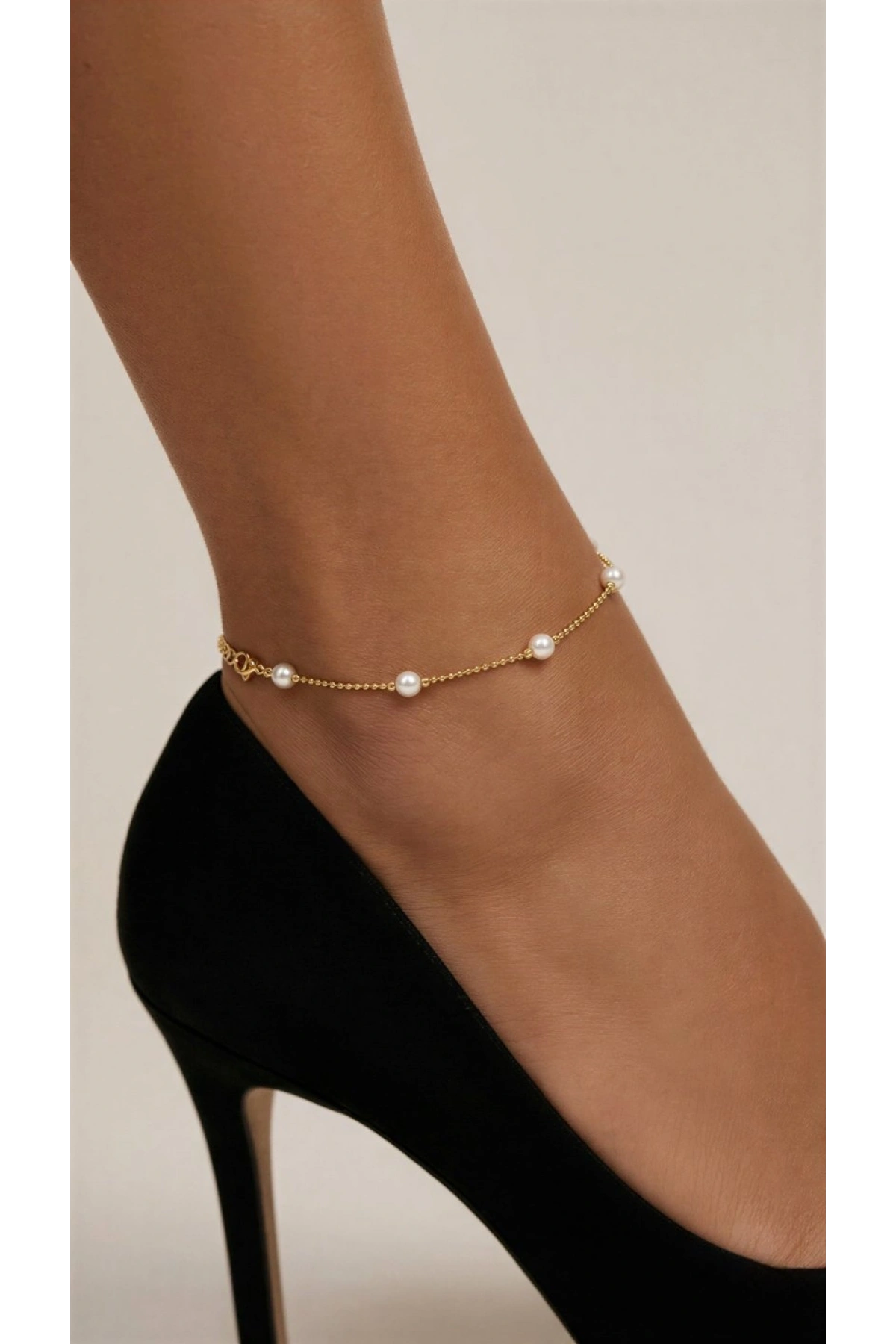 Sıralı İnci Model Gold Altın Kaplama Halhal