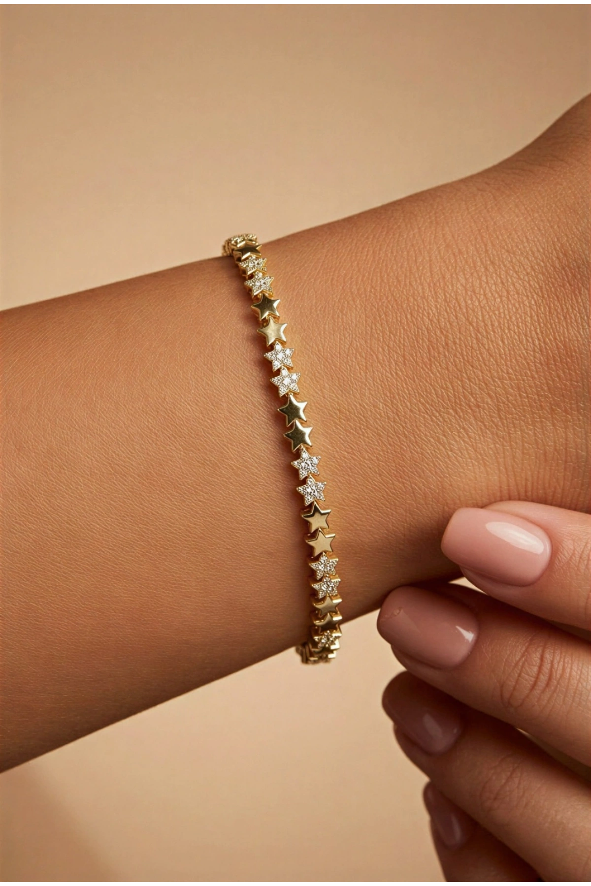 Sıralı Taş Yıldız Model Gold Altın Kaplama Bileklik