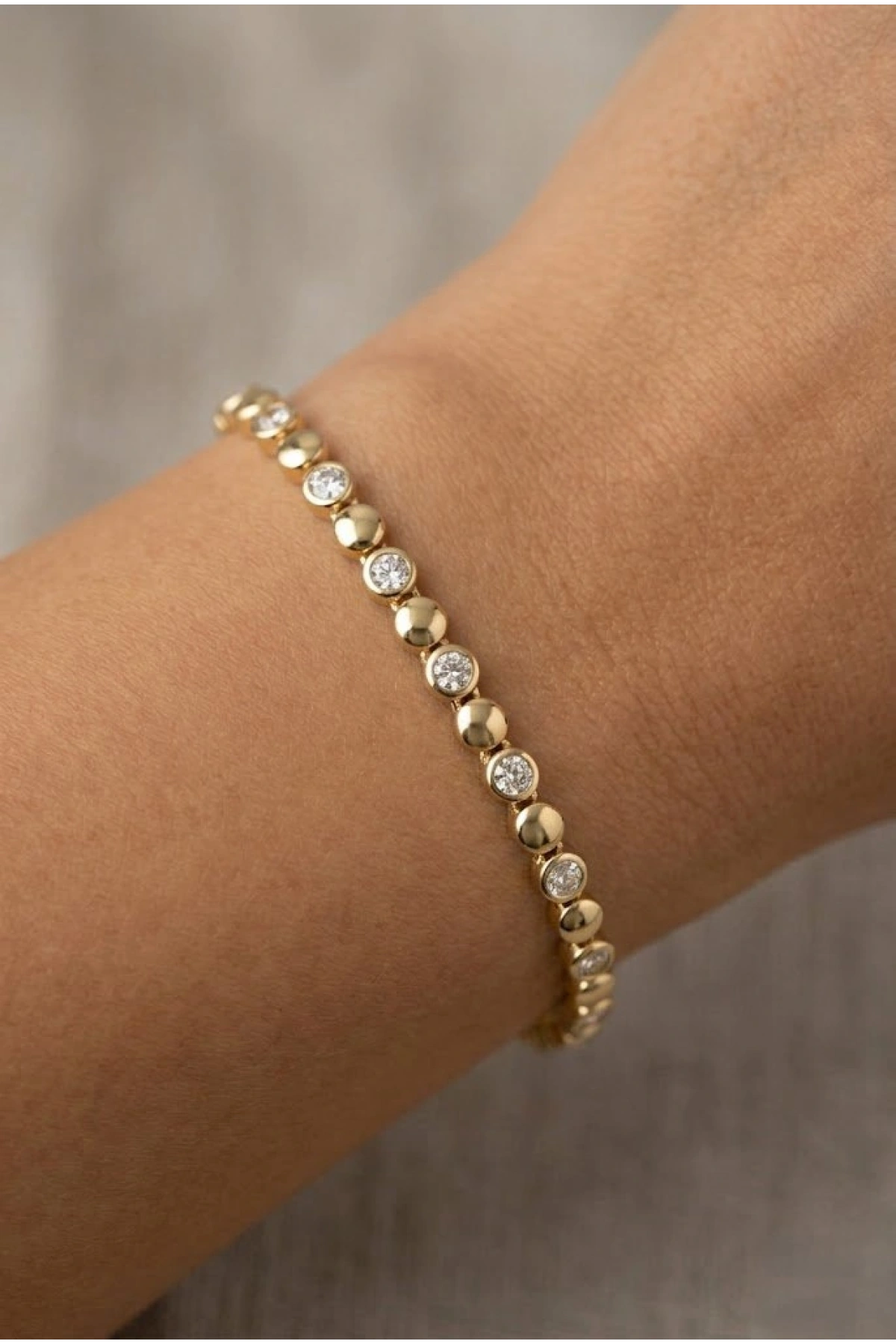 Sıralı Yuvarlak Model Taş Detay Gold Altın Kaplama Bileklik